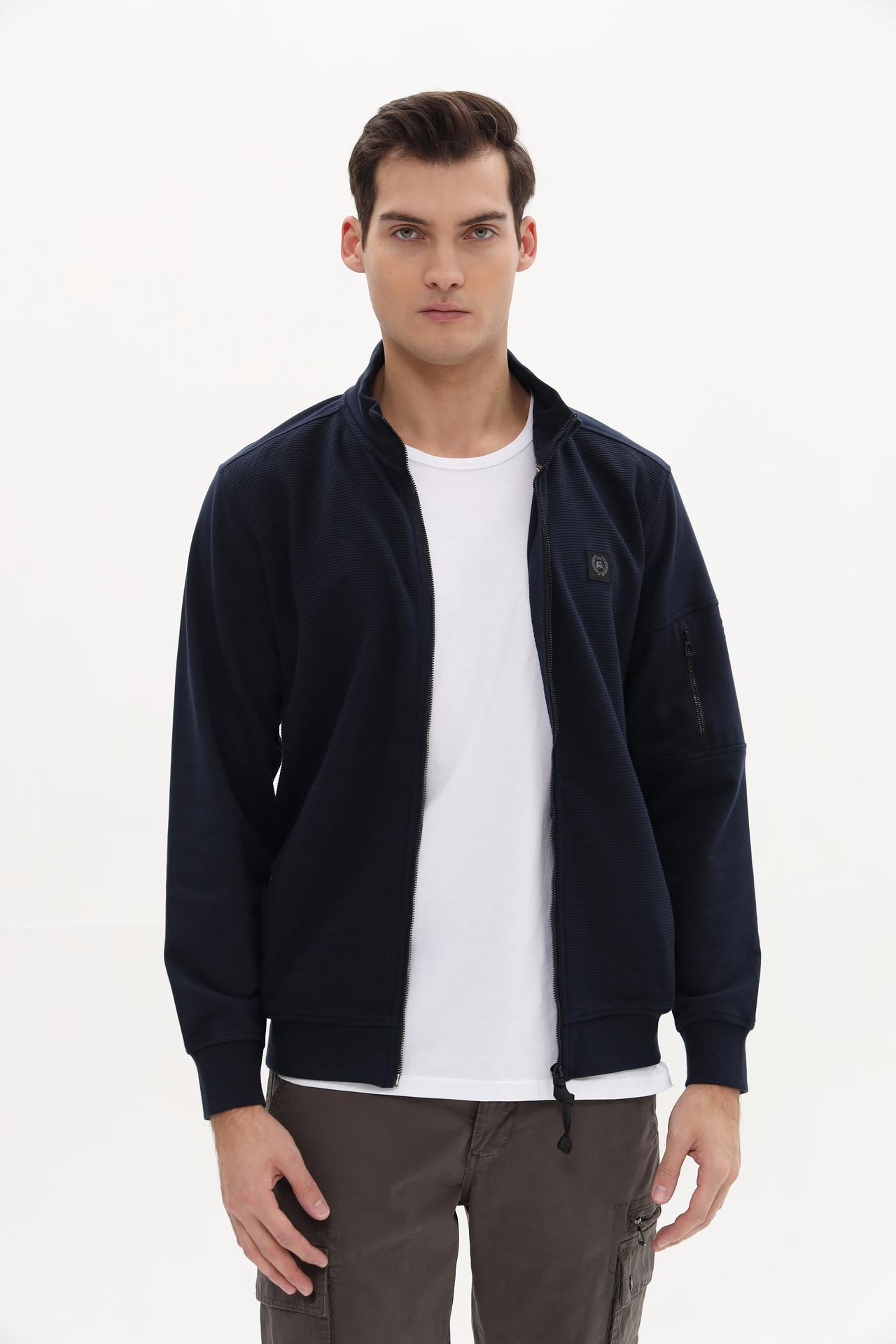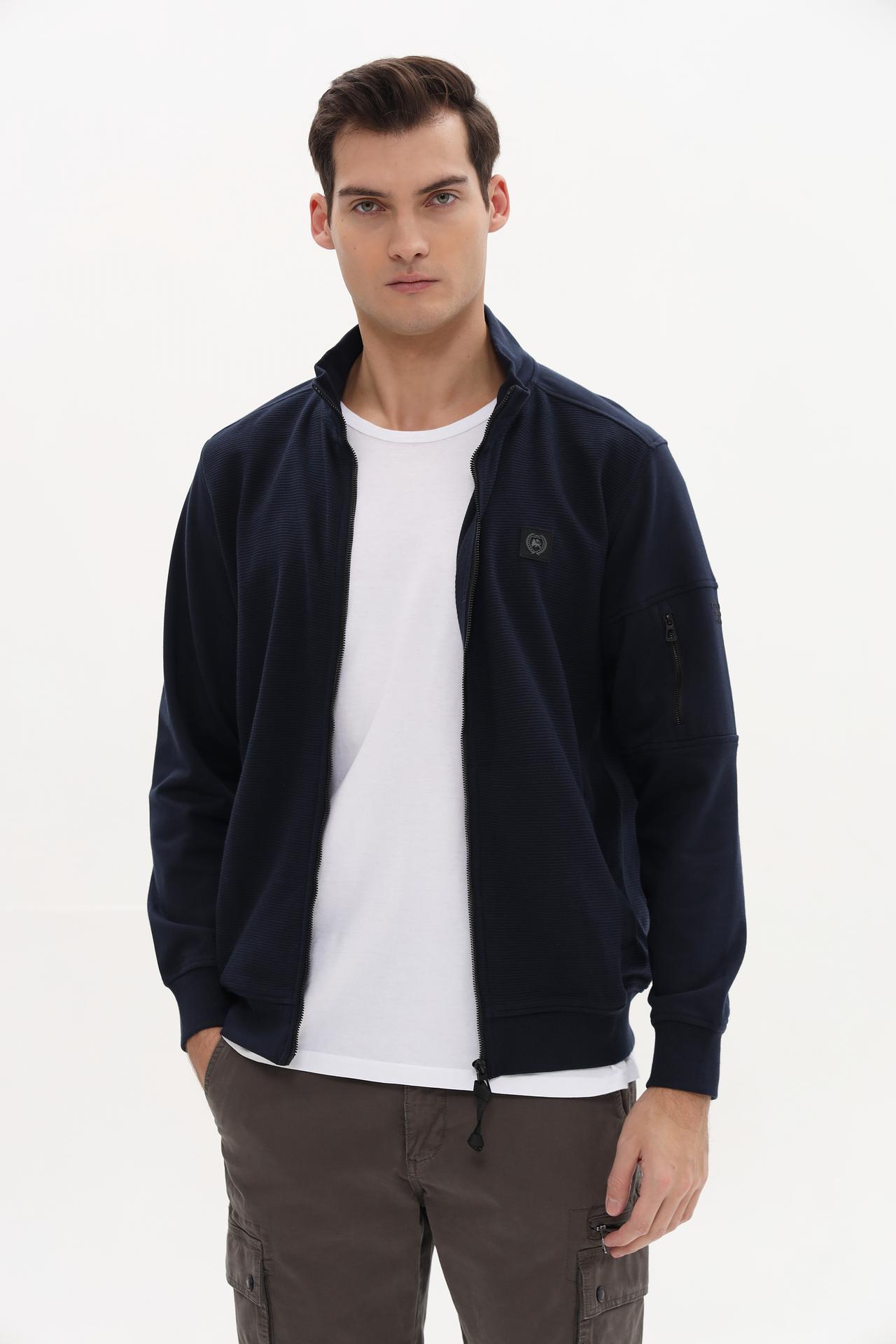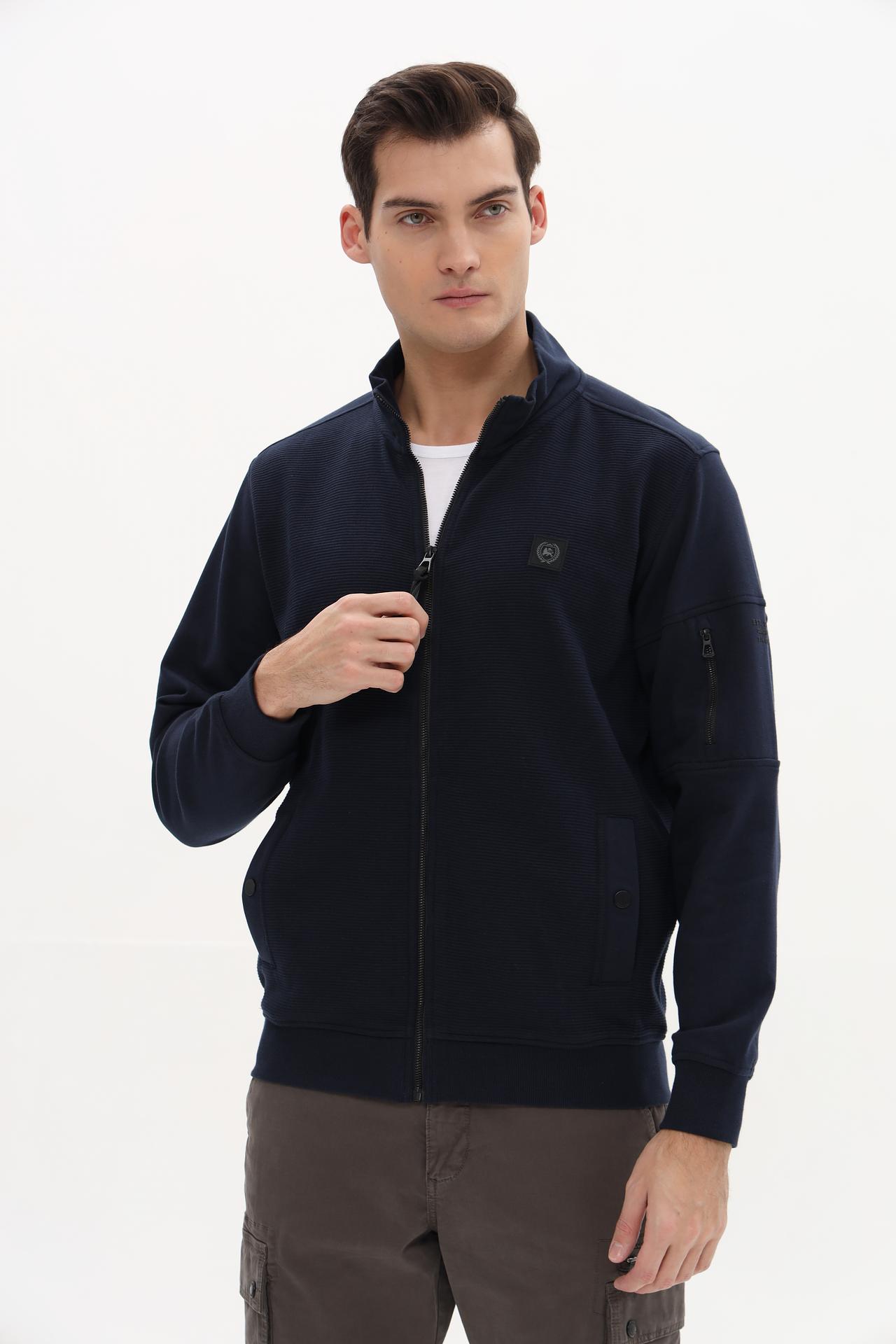 Мужской кардиган Lerros темно-синий с воротником-стойкой и карманами