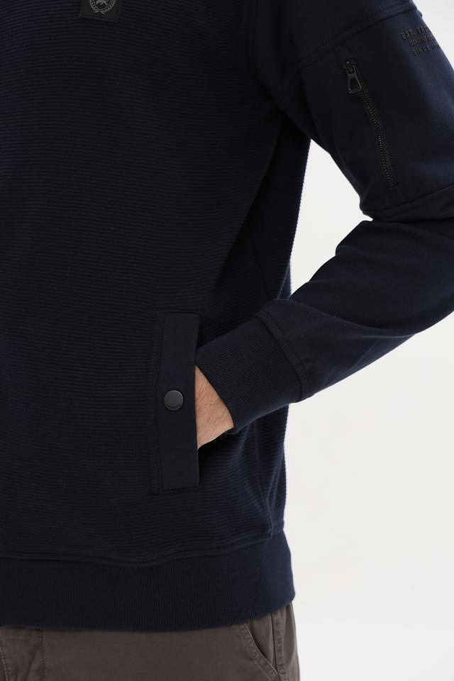 Мужской кардиган Lerros тёмно-синего цвета – это стильная и комфортная модель на молнии. Изготовлен из 100% хлопка, обеспечивающего мягкость и удобство в носке. Отличный выбор для создания повседневных образов. Состав: хлопок 100%