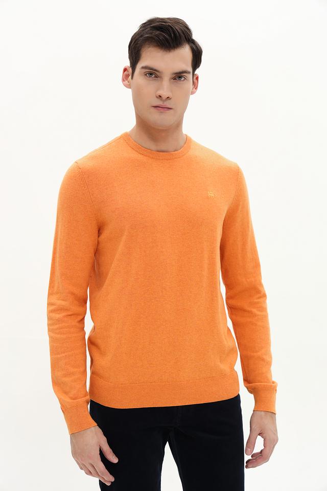 Джемпер выполнен в насыщенном оранжевом цвете, который добавит яркости вашему образу. Небольшой вышитый логотип бренда на груди придает изделию узнаваемый стиль.