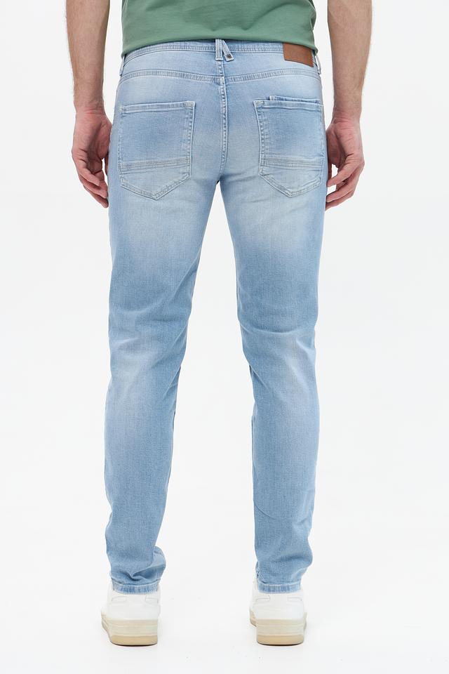 Застежка на молнию и пуговицу, пять карманов – два передних, два задних и один небольшой карман для мелочи. Текстура ткани имеет легкий эффект потертости, что придает джинсам более непринужденный и стильный вид. Состав: хлопок 99%, эластан 1%.