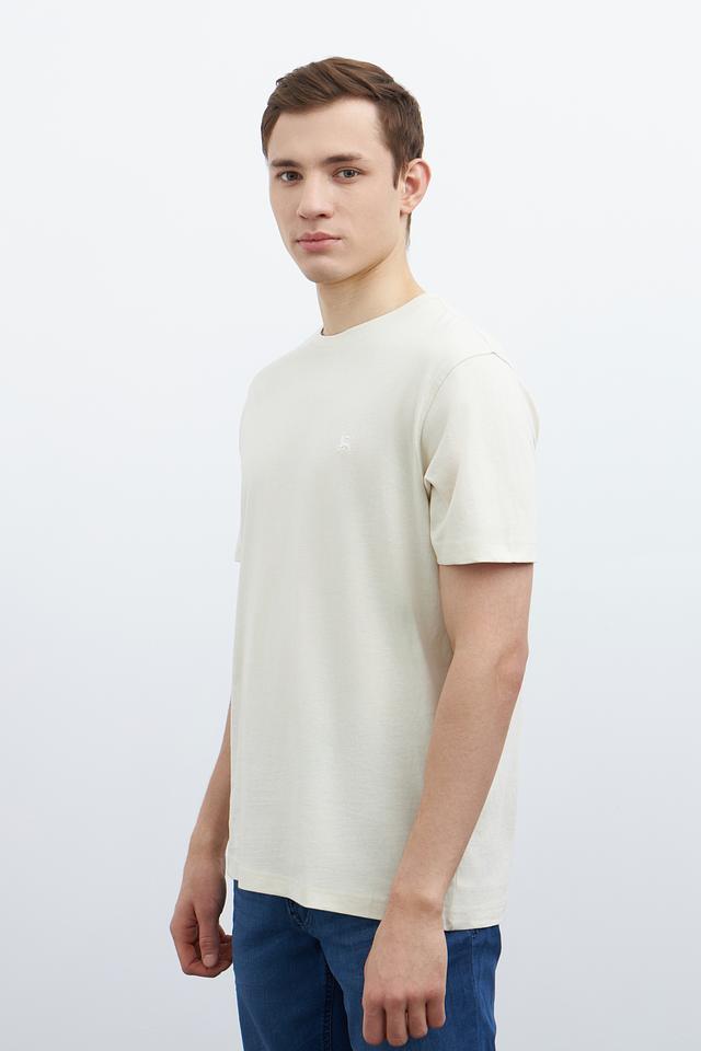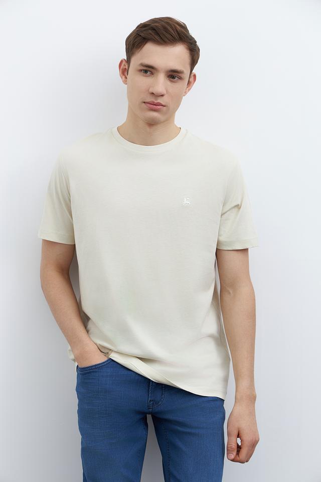 Отличительной особенностью данной модели является её лаконичный дизайн. На груди расположена небольшая вышивка с логотипом бренда, что придает футболке стильный и узнаваемый вид. Цвет футболки – нежный бежевый, который легко сочетается с различными элементами гардероба.