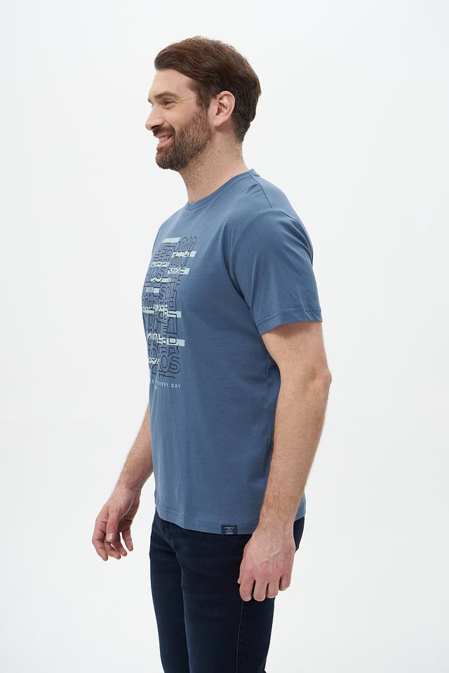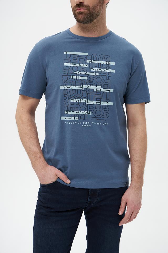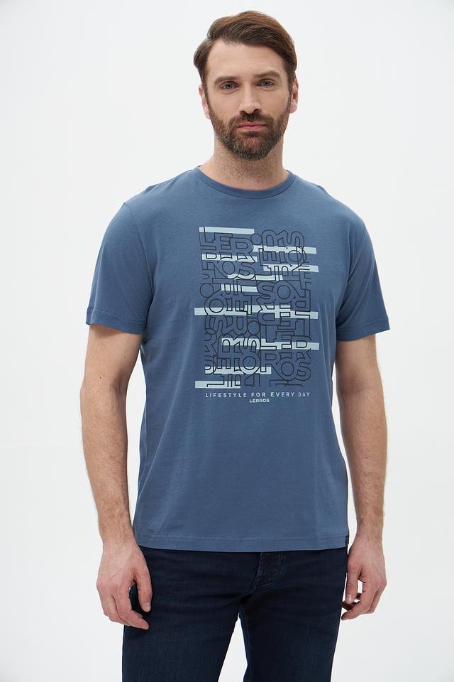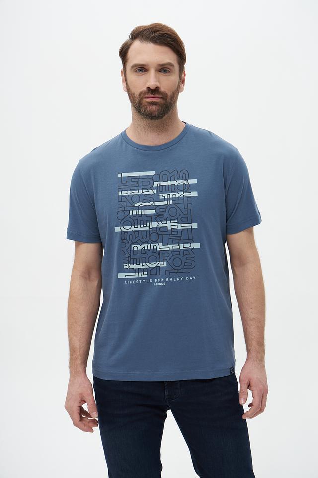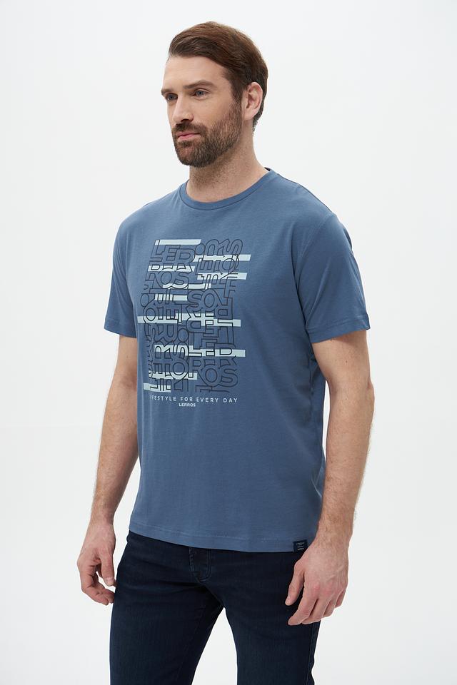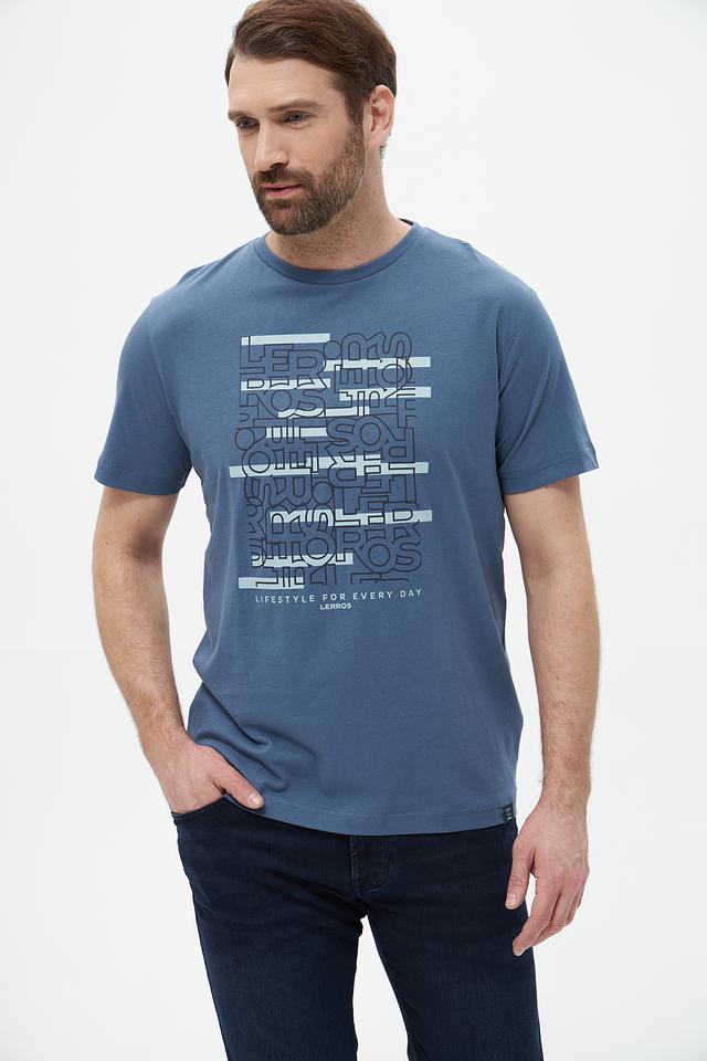 Мужская футболка Lerros голубого цвета с оригинальным принтом. Изготовлена из 100% хлопка, обеспечивающего комфорт и воздухопроницаемость. Отличный выбор для повседневного образа. Состав: хлопок 100%