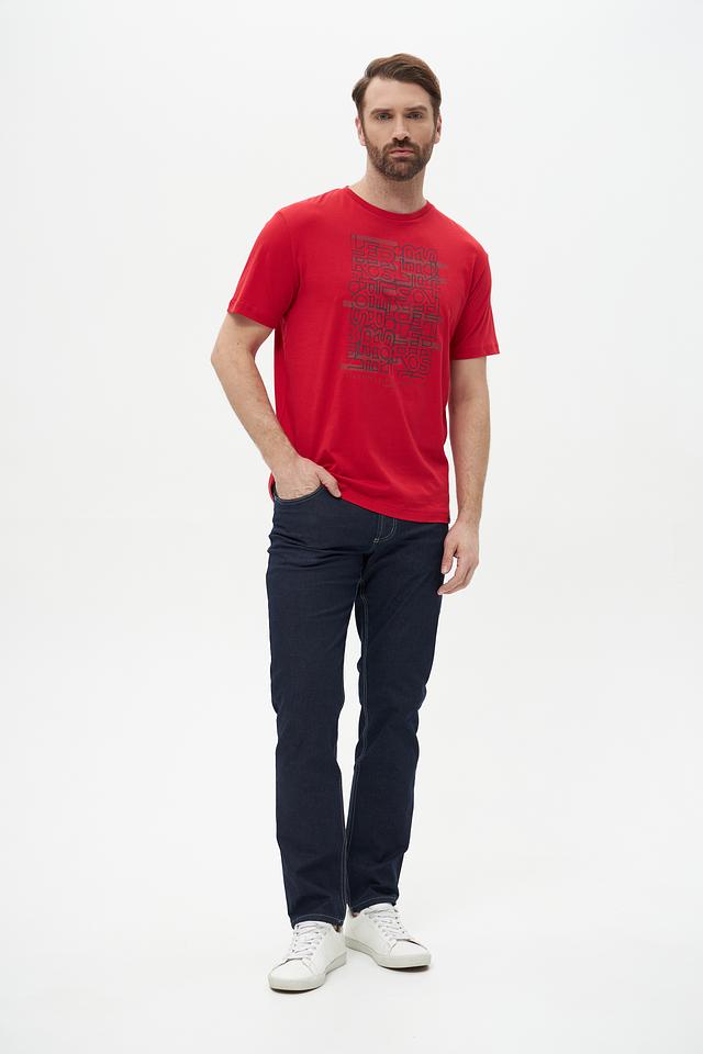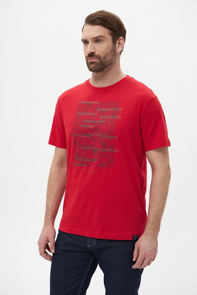 Мужская футболка Lerros красного цвета с оригинальным принтом логотипа бренда. Изготовлена из 100% хлопка, обеспечивающего комфорт и воздухопроницаемость. Отличный выбор для повседневного образа. Состав: хлопок 100%