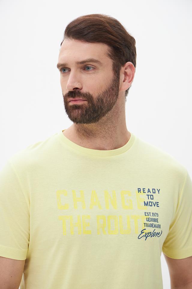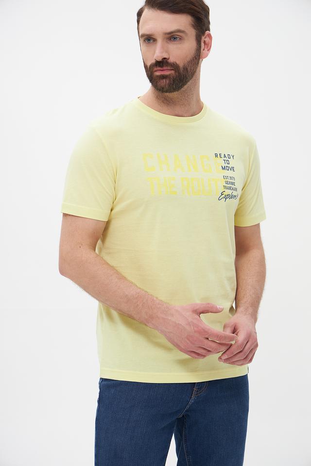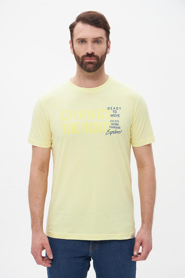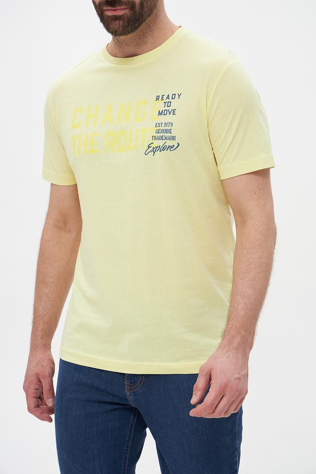 Мужская футболка от Lerros – это отличный выбор для создания повседневного образа. Футболка выполнена в светло-жёлтом цвете и украшена ярким принтом с надписью и графическими элементами.