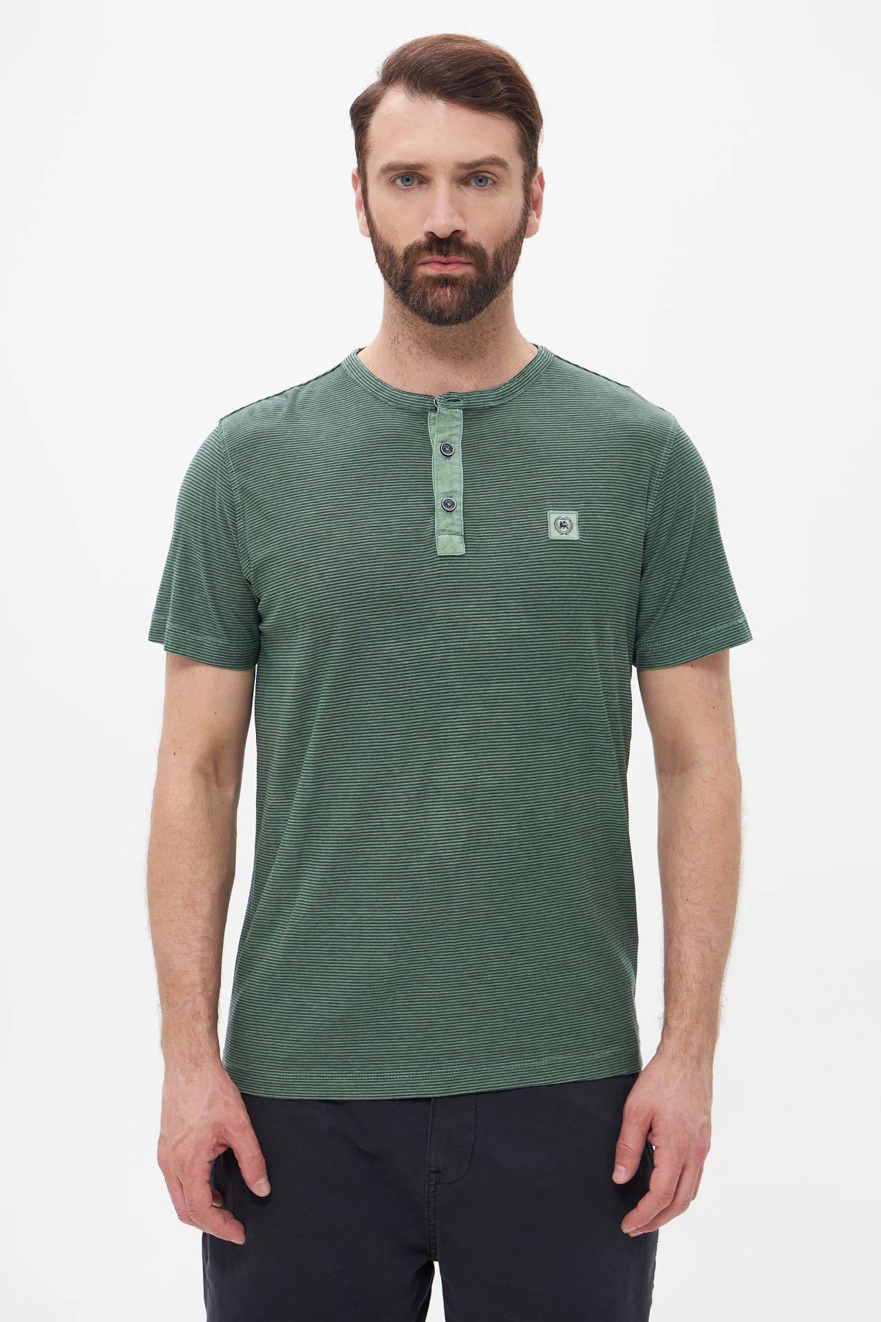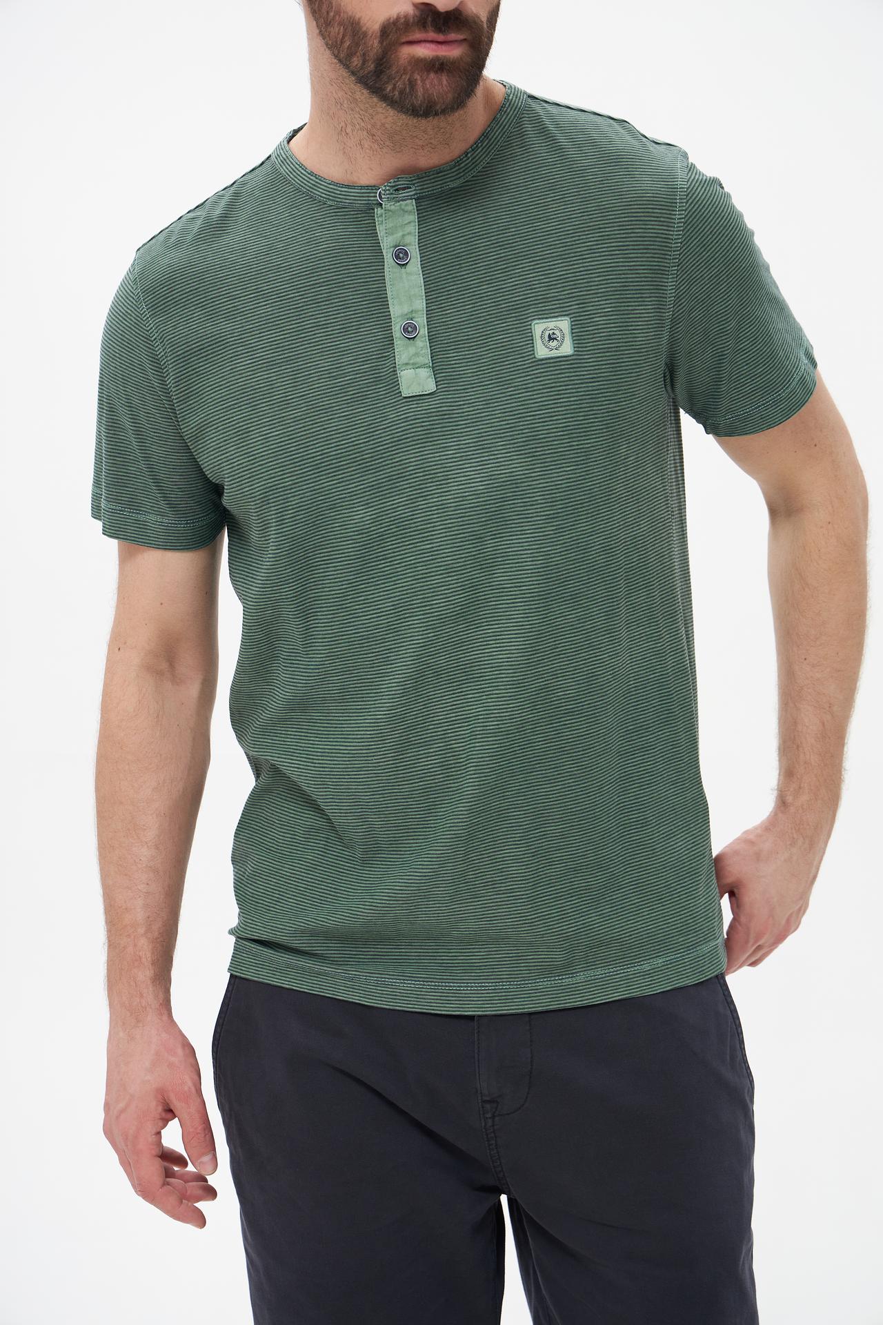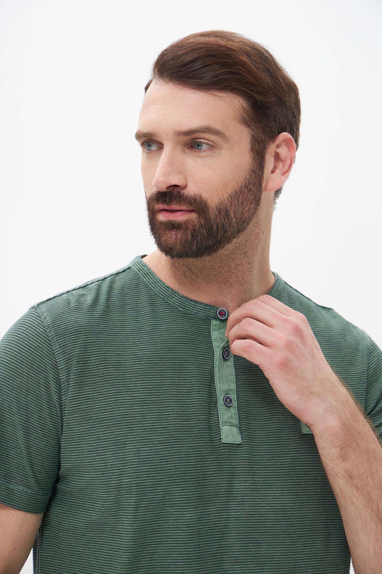 Футболка Lerros зеленая в полоску с пуговицами