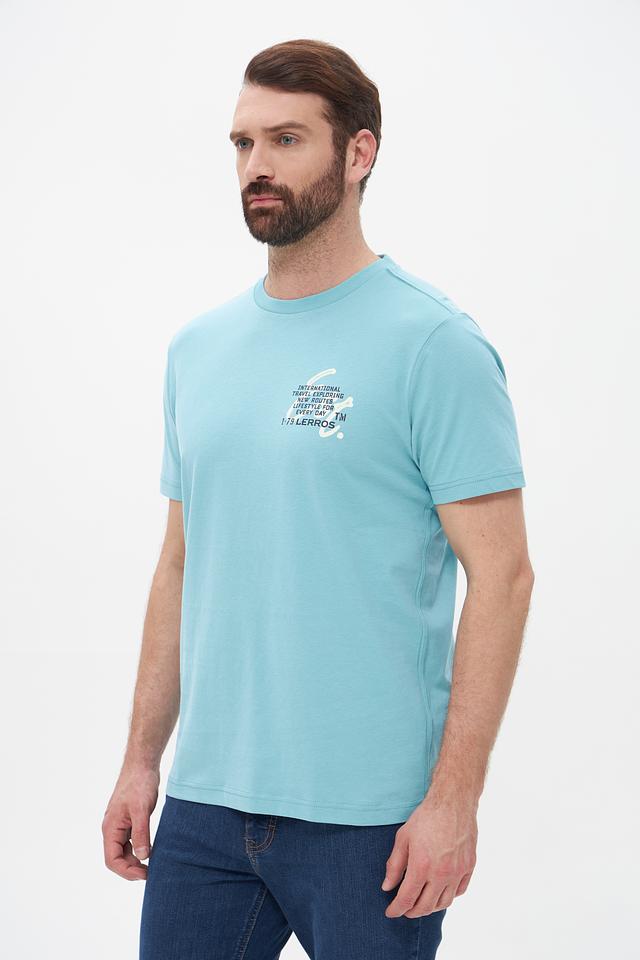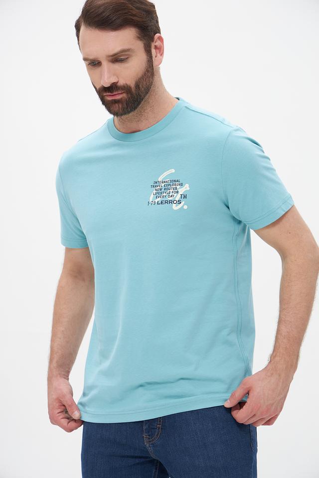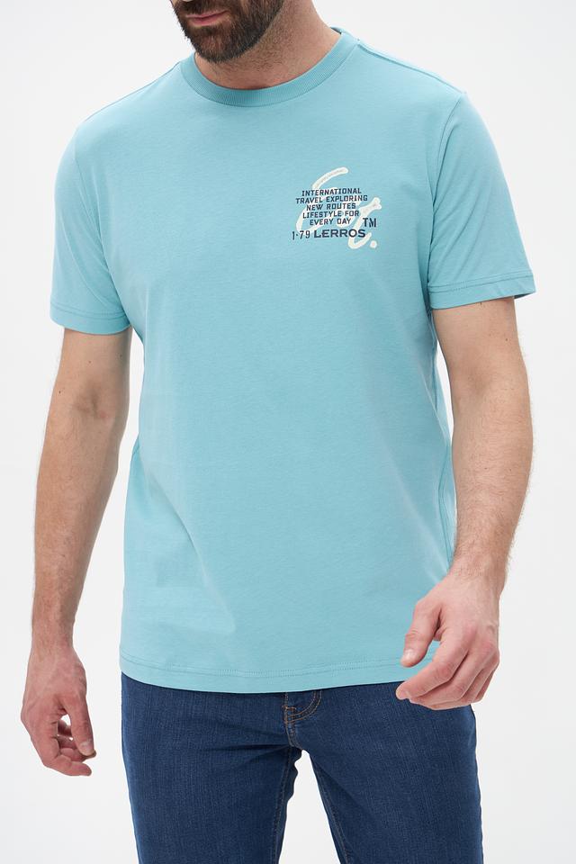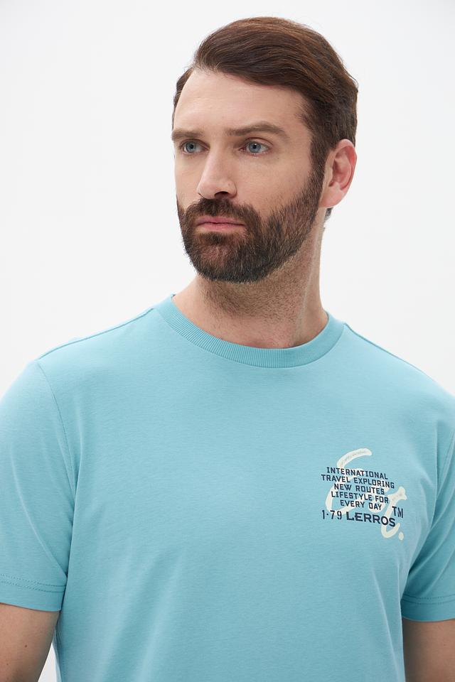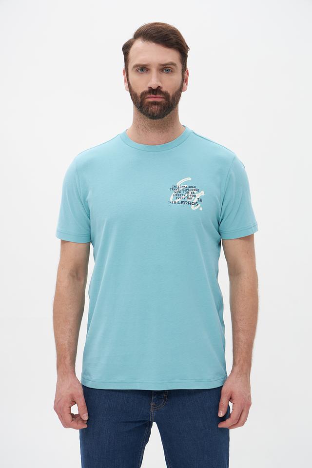 Мужская футболка Lerros бирюзового цвета с оригинальным принтом на груди. Изготовлена из 100% хлопка, обеспечивающего комфорт и воздухопроницаемость. Отличный выбор для повседневного образа. Состав: хлопок 100%