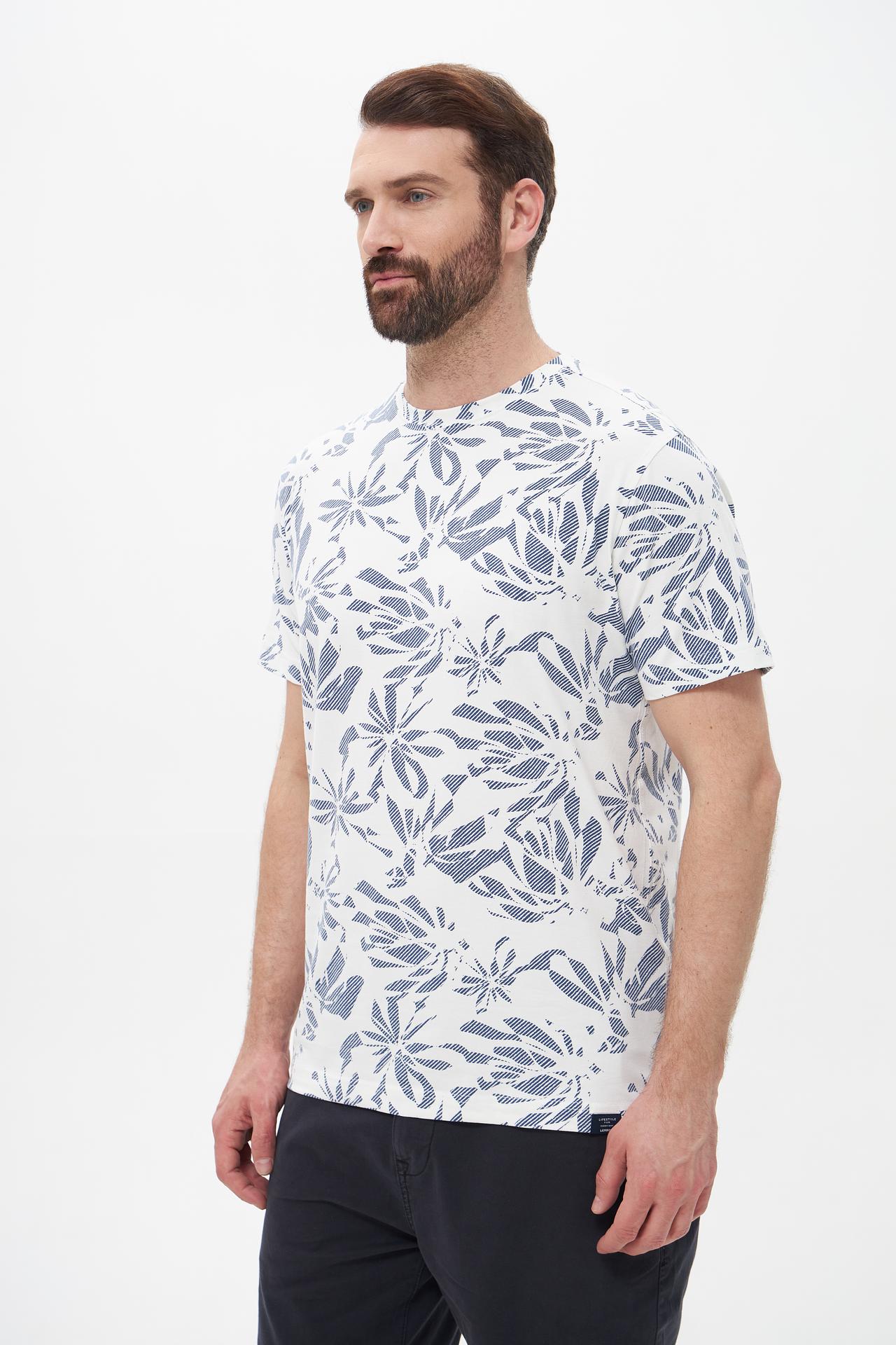Эта стильная мужская футболка от Lerros станет отличным дополнением к вашему гардеробу. Изготовленная из мягкого и приятного к телу материала (95% хлопок, 5% эластан), она обеспечит комфорт в течение всего дня. Оригинальный цветочный принт в синих тонах на белом фоне делает эту футболку запоминающейся и подходящей для создания непринужденного образа.