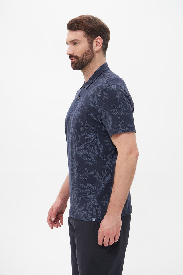 Мужское поло Lerros тёмно-синего цвета с оригинальным цветочным принтом. Изготовлено из мягкого и приятного к телу хлопка с добавлением эластана для комфортной посадки и свободы движений. Состав: хлопок 95%, эластан 5%