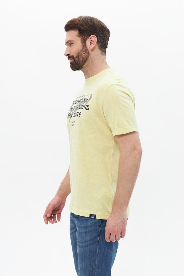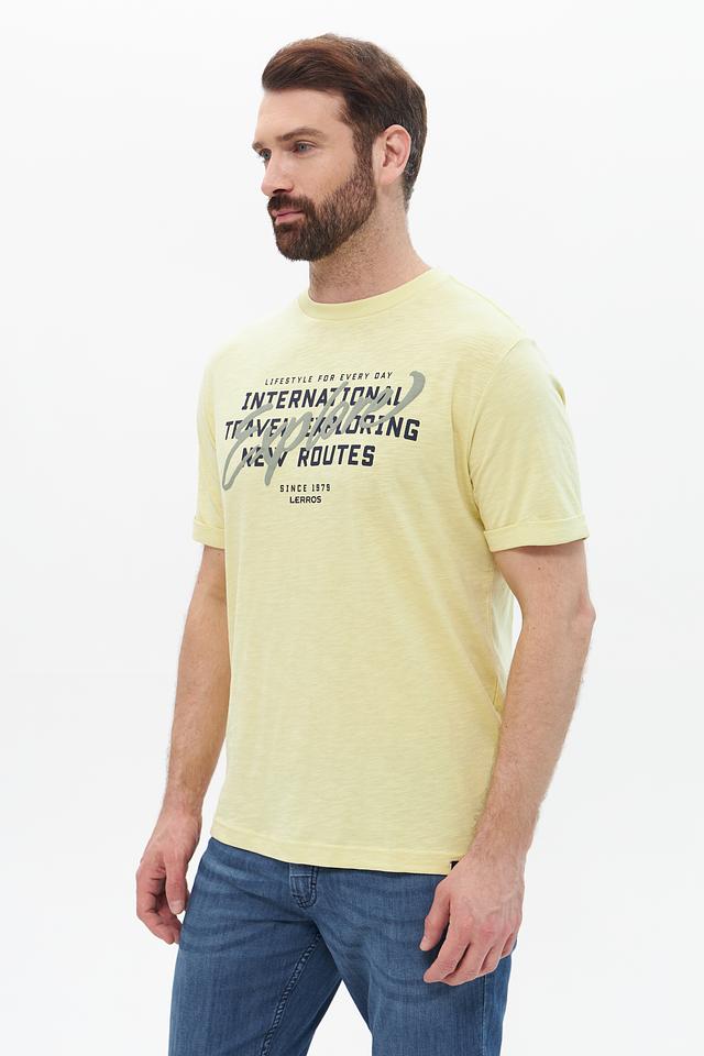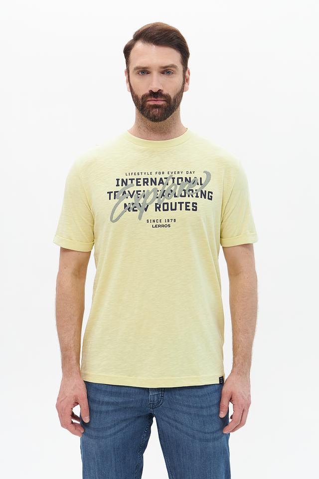 Стильная мужская футболка Lerros светло-жёлтого цвета с оригинальным принтом. Изготовлена из 100% хлопка, обеспечивающего комфорт и воздухопроницаемость. Состав: хлопок 100%