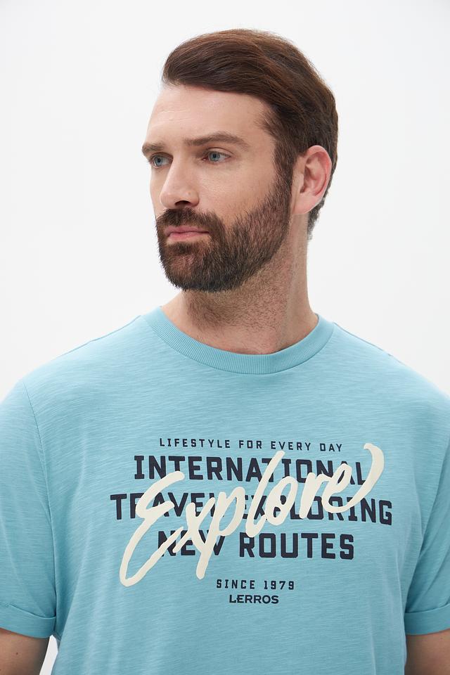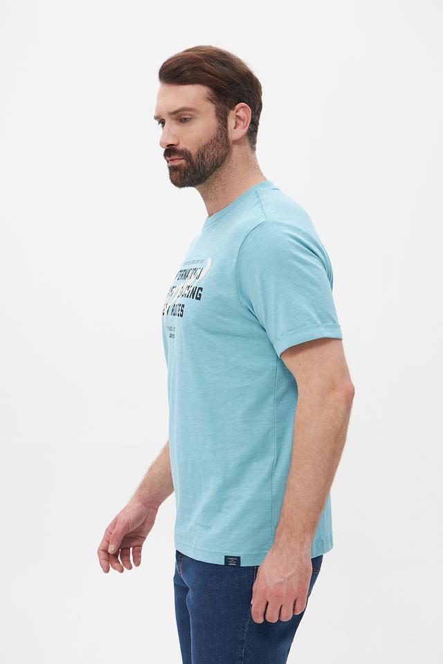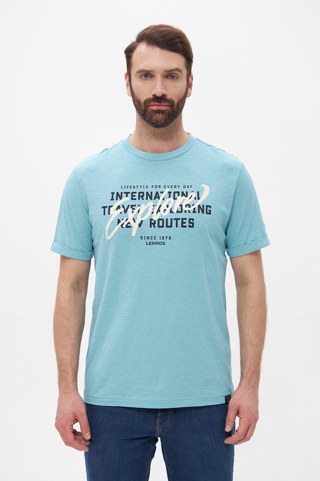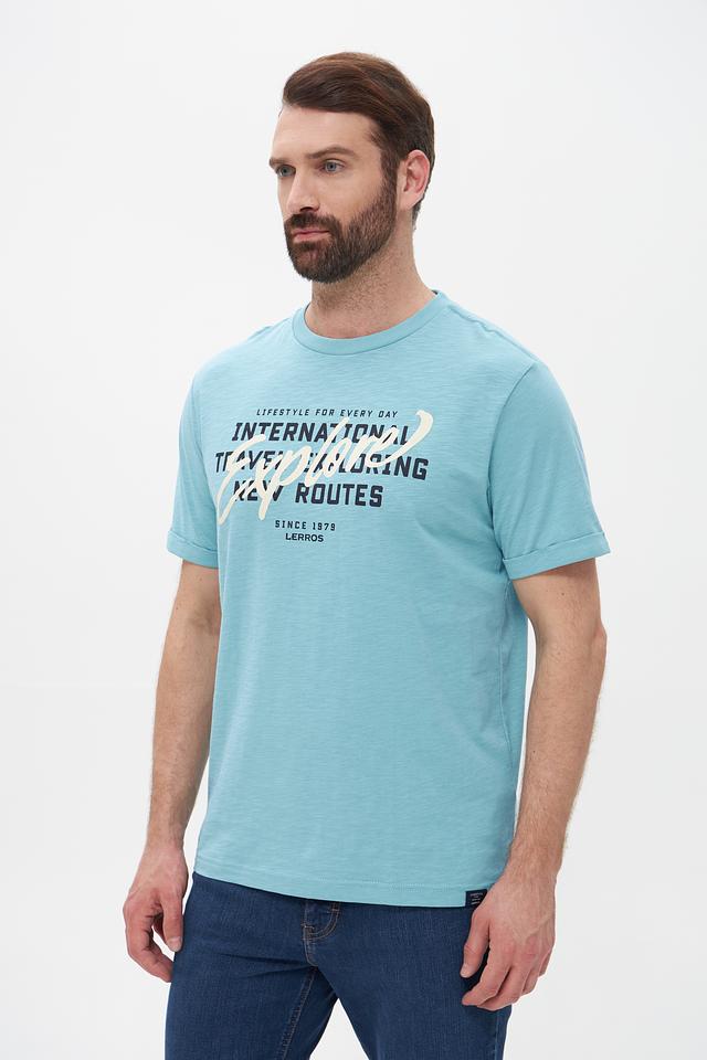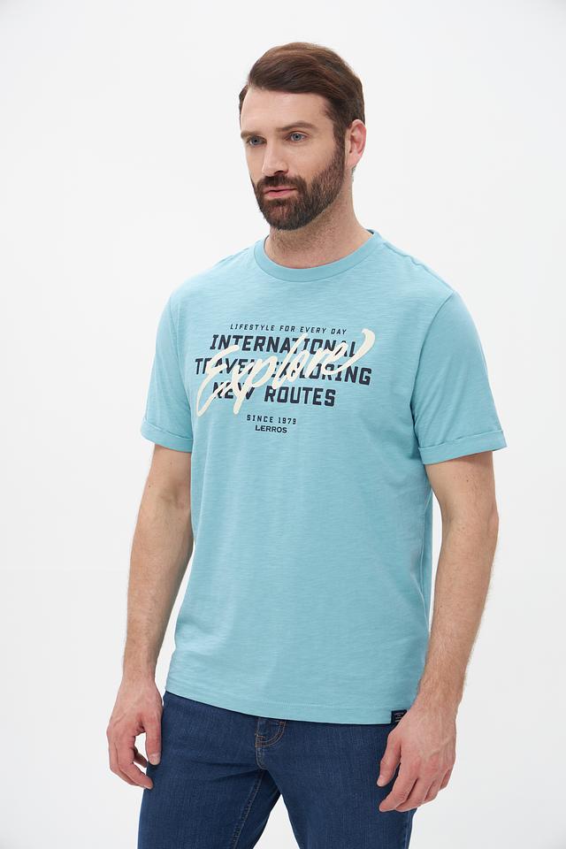 Представляем мужскую футболку от бренда Lerros. Эта футболка выполнена в приятном бирюзовом цвете и станет отличным дополнением к вашему летнему гардеробу.