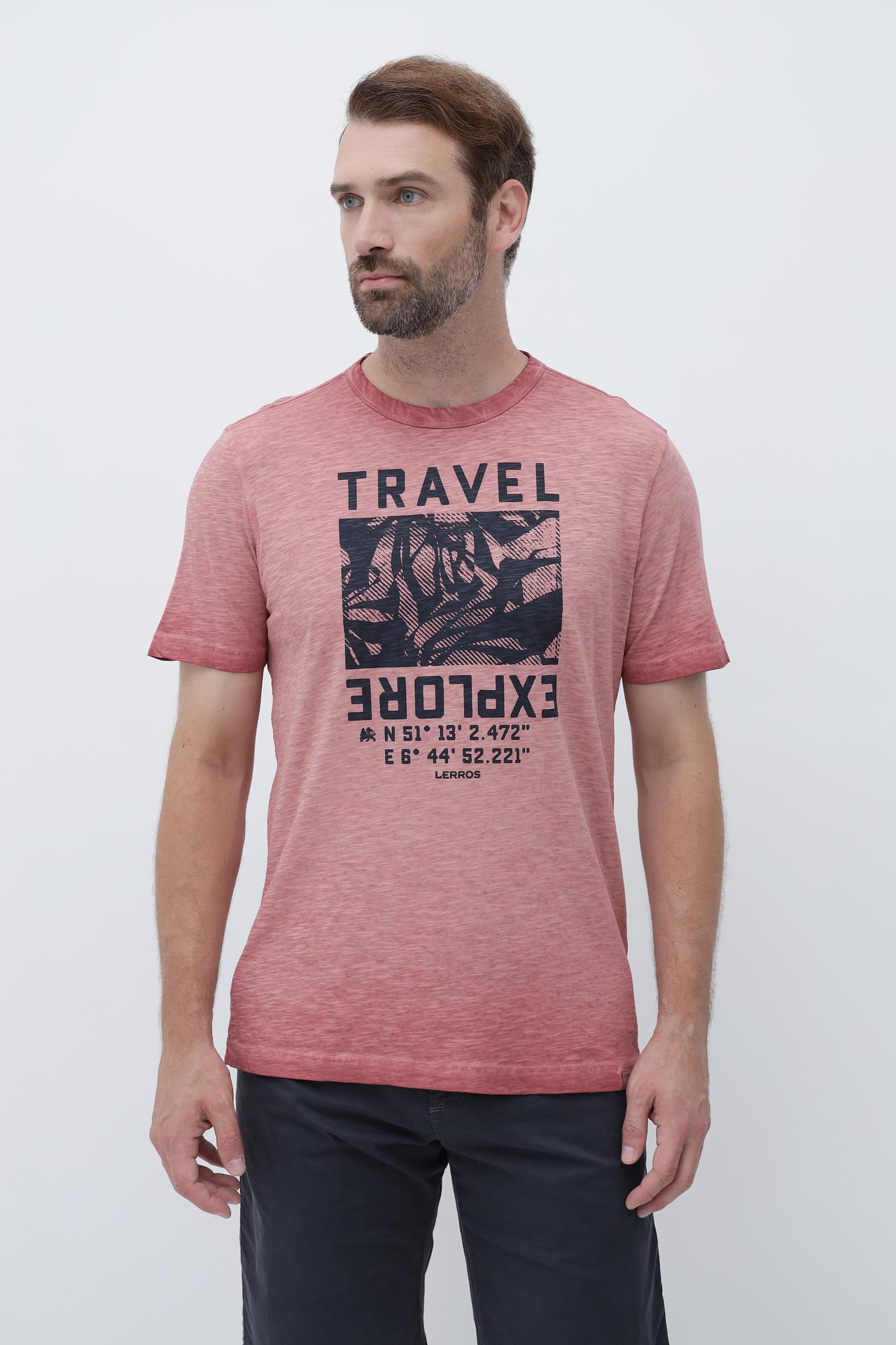 Футболка Lerros Бордовая с принтом TRAVEL EXPLORE