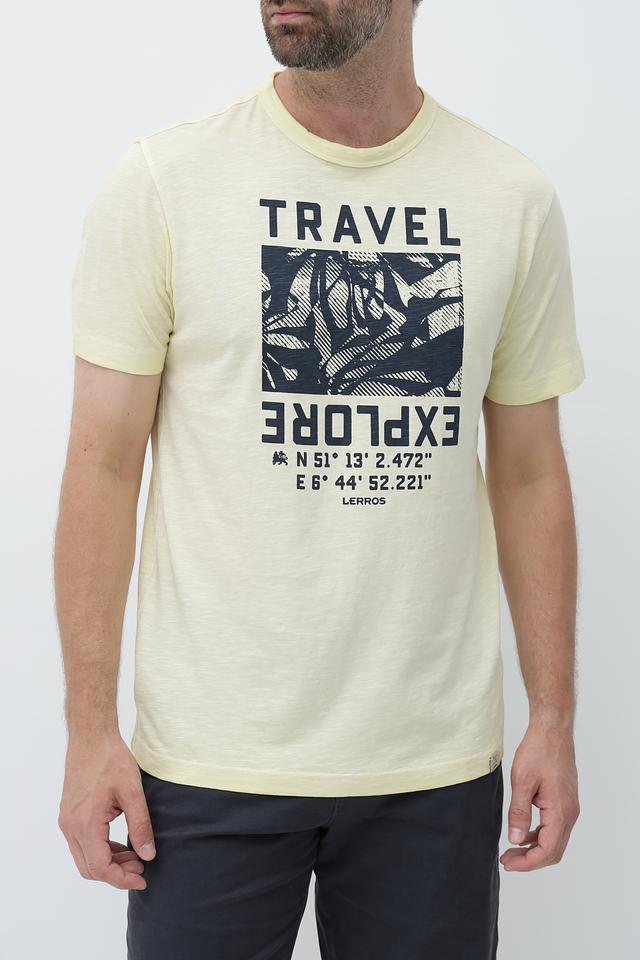 Мужская футболка Lerros – это сочетание комфорта и стиля. Футболка выполнена в светло-жёлтом цвете и украшена оригинальным принтом "Travel", который добавляет образу динамичности и индивидуальности.