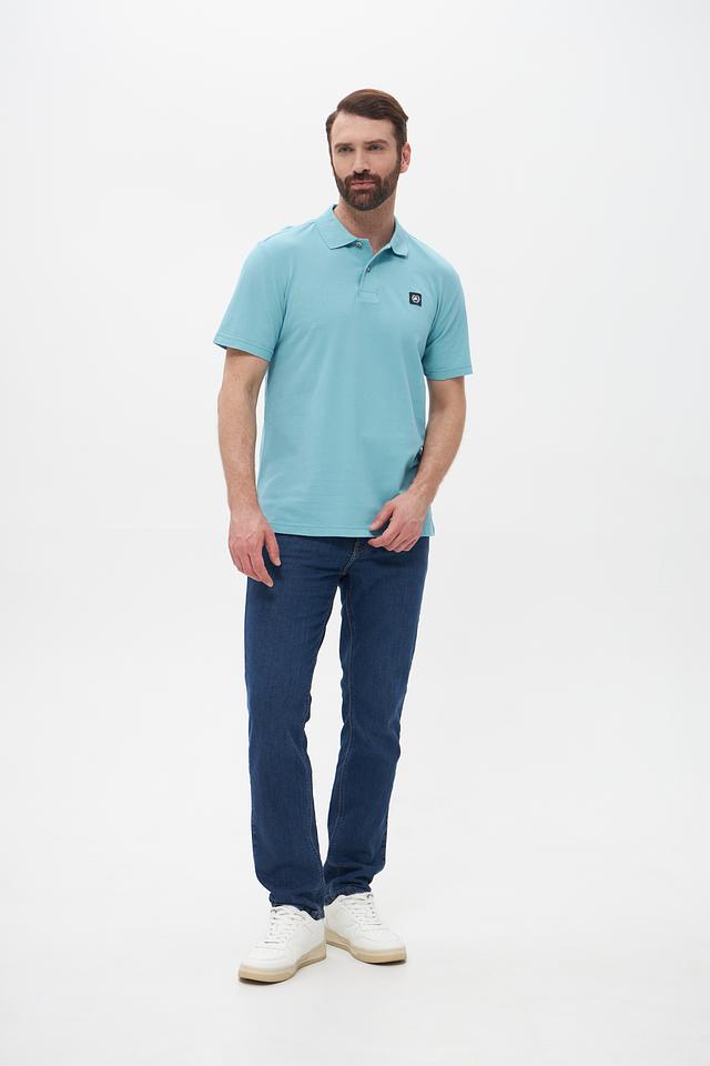 Поло имеет классический крой, который хорошо сидит по фигуре, не сковывая движений. Бирюзовый цвет придает образу свежесть и легкость. На груди расположена небольшая эмблема бренда, добавляющая стильный акцент.