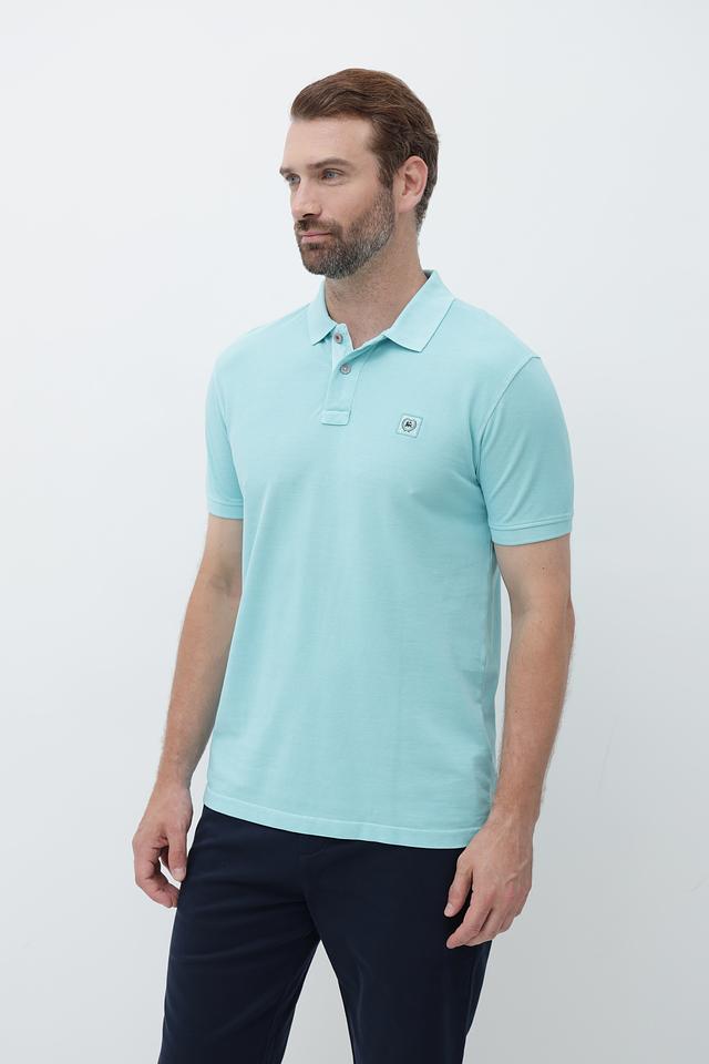 Поло выполнено в нежном мятном цвете, который легко сочетается с различными элементами гардероба. На груди расположена небольшая эмблема бренда, добавляющая изделию узнаваемость.