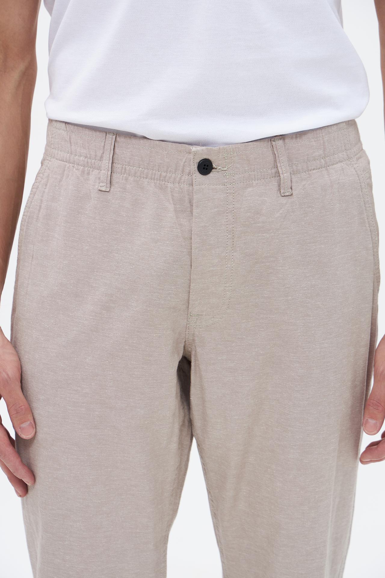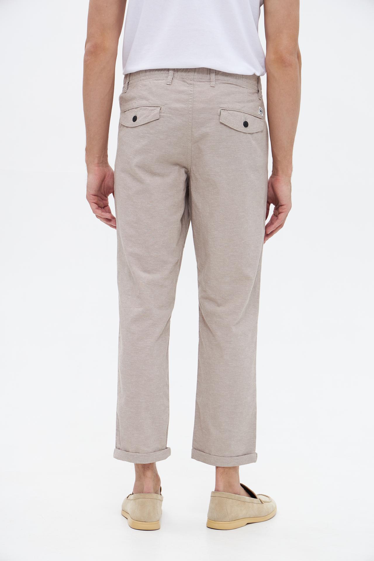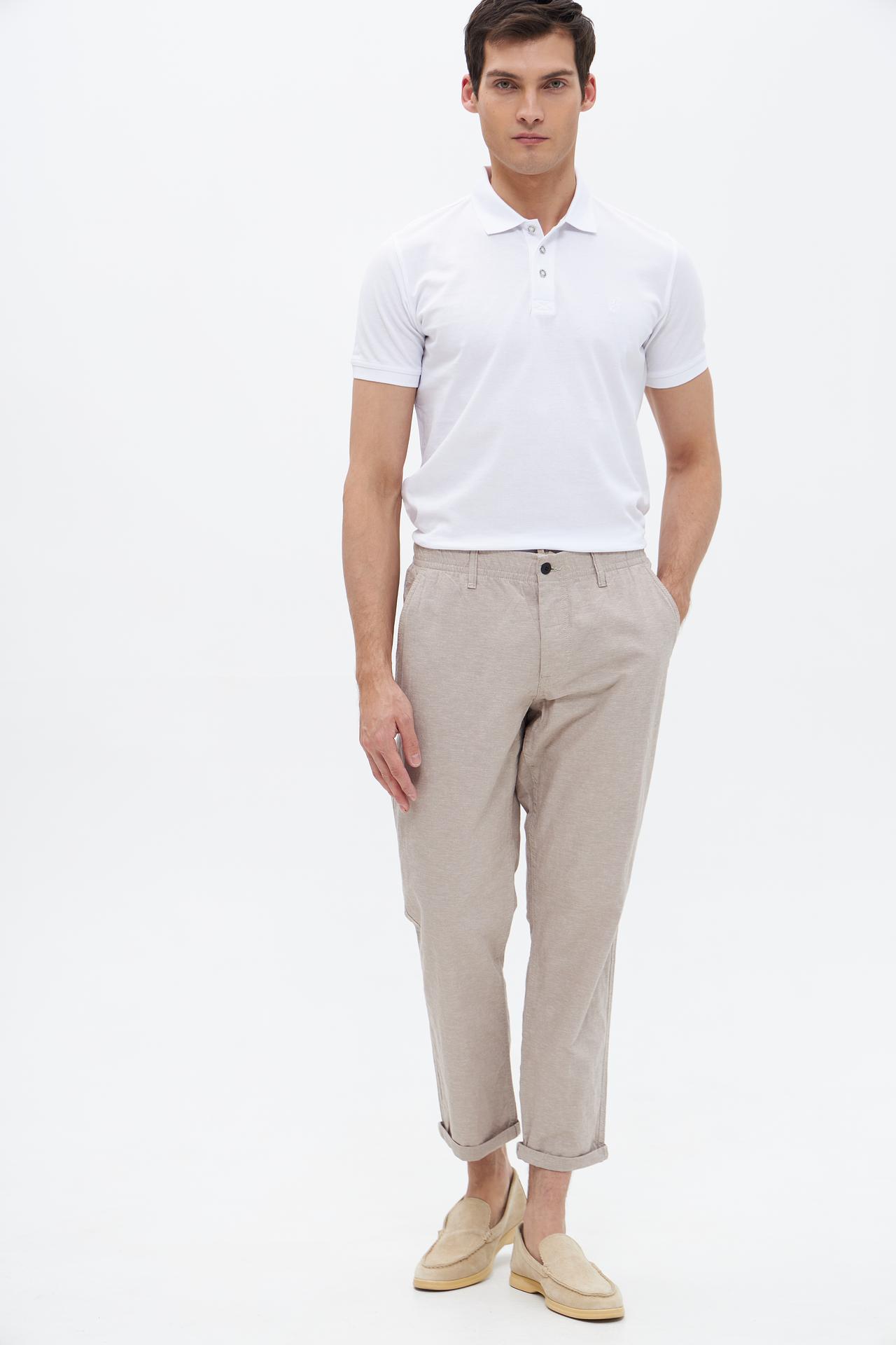 - Универсальный дизайн: Прямой крой, классическая длина и нейтральный бежевый оттенок позволяют легко комбинировать брюки с различными элементами одежды. Эффектно смотрятся с подворотами.