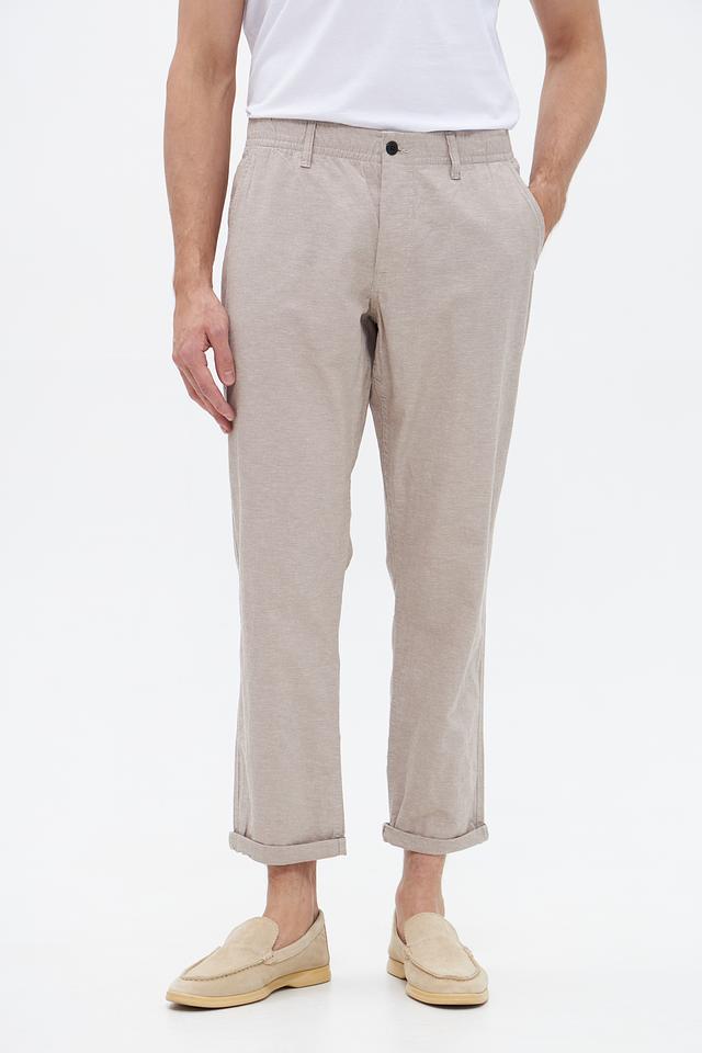 Брюки имеют прямой крой, который обеспечивает свободу движений и комфорт в течение всего дня. Эластичный пояс с кулиской позволяет регулировать посадку по фигуре. Материал – сочетание хлопка (74%) и льна (26%), что делает брюки дышащими и приятными к телу, особенно в теплую погоду.