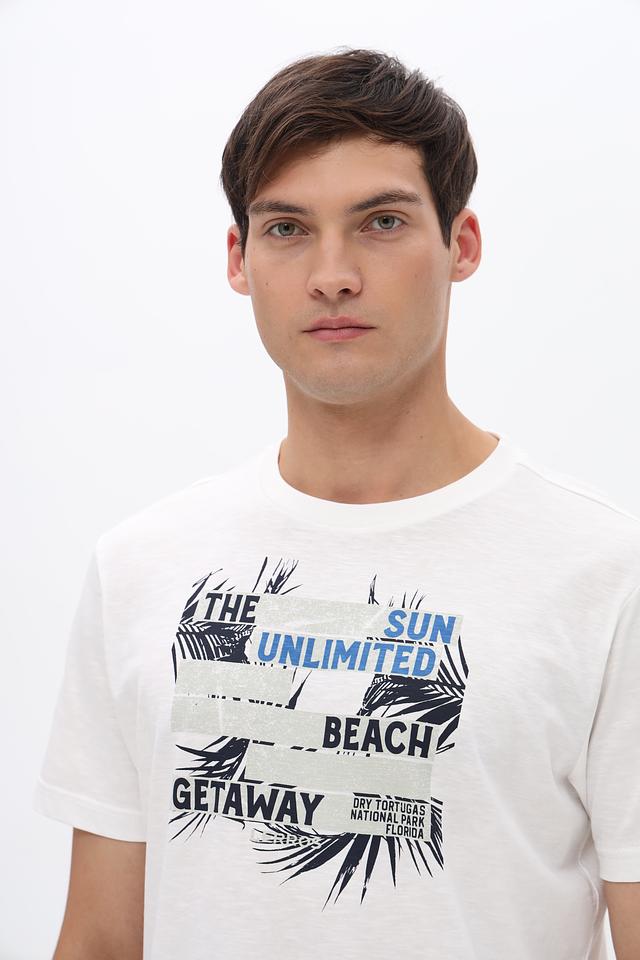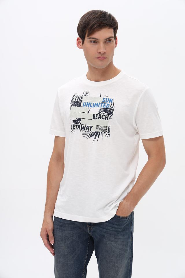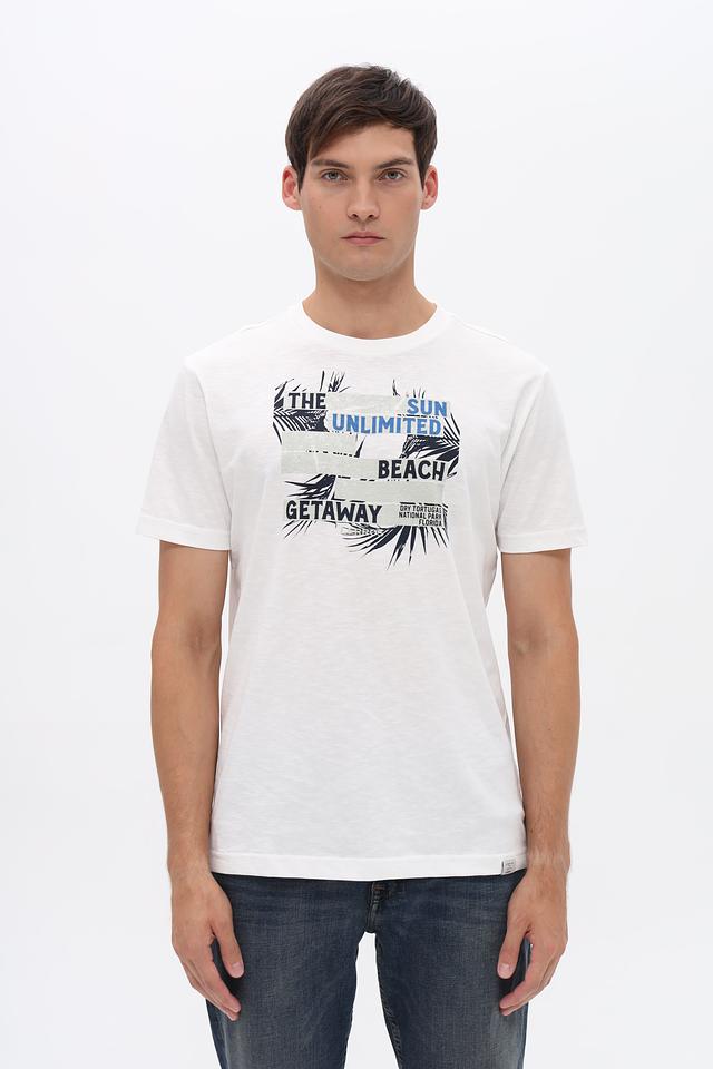 Белая футболка Lerros с ярким принтом в пляжном стиле. Изготовлена из 100% хлопка, обеспечивая комфорт и воздухопроницаемость. Отличный выбор для повседневного образа. Состав: хлопок 100%