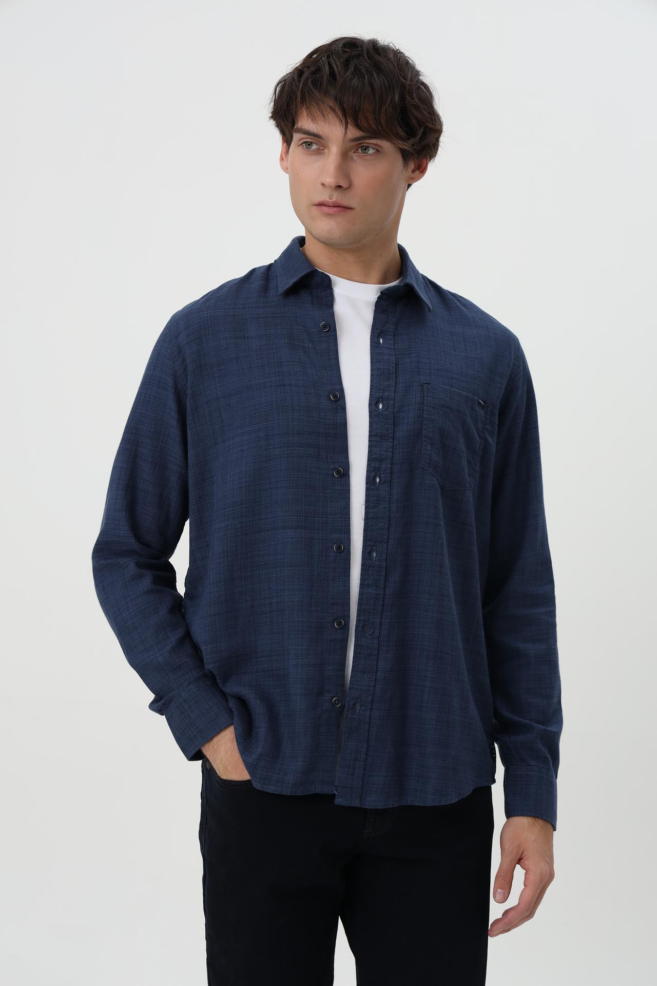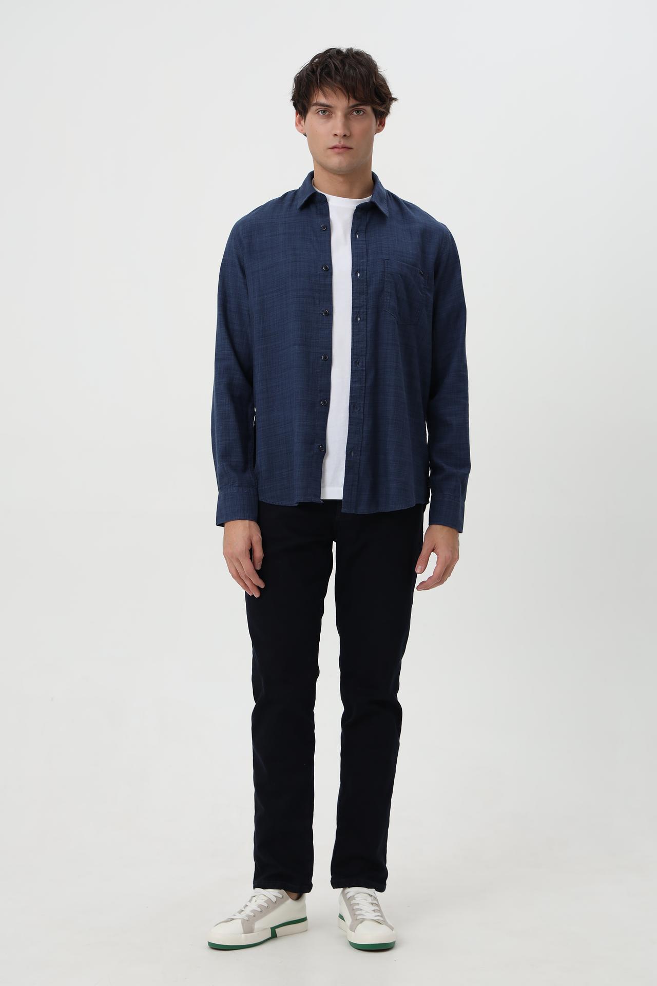 - Дизайн: Классический крой с длинным рукавом, отложным воротником и нагрудным карманом делает эту рубашку стильной и функциональной.