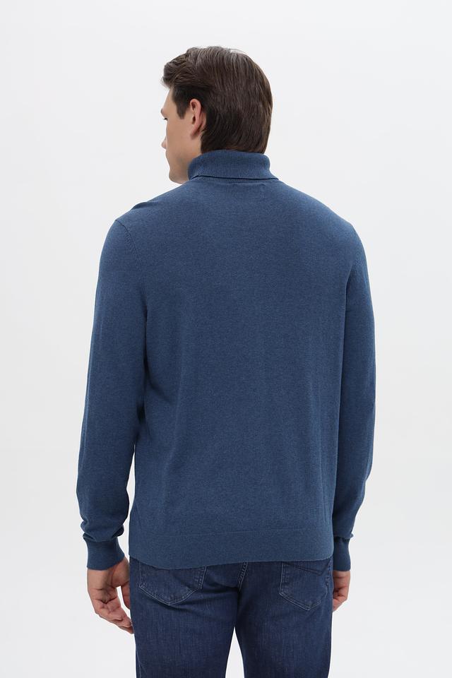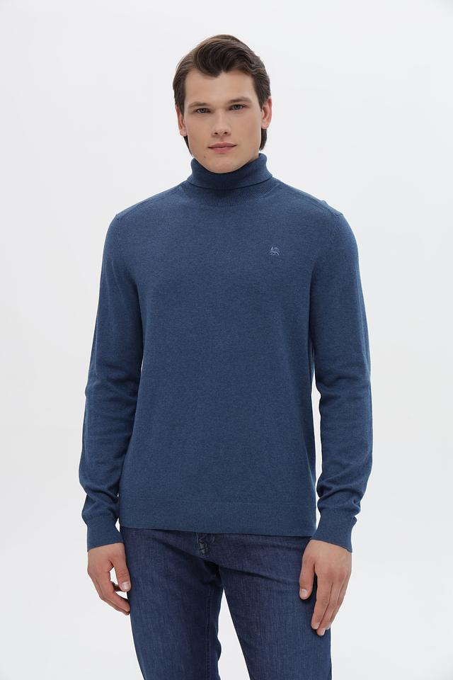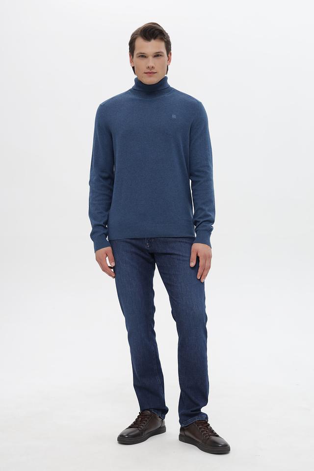 Водолазка имеет классический крой, который хорошо сидит по фигуре и не сковывает движения. Синий цвет придает изделию универсальность, позволяя легко сочетать его с различными элементами гардероба.