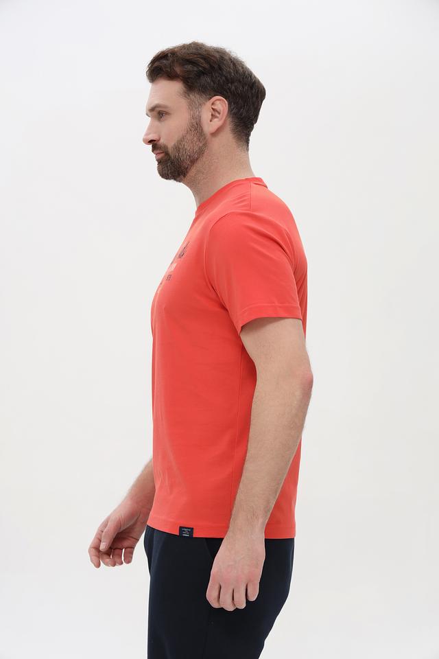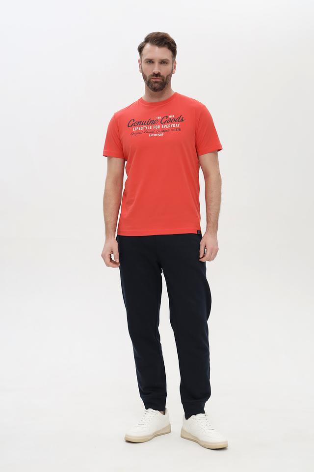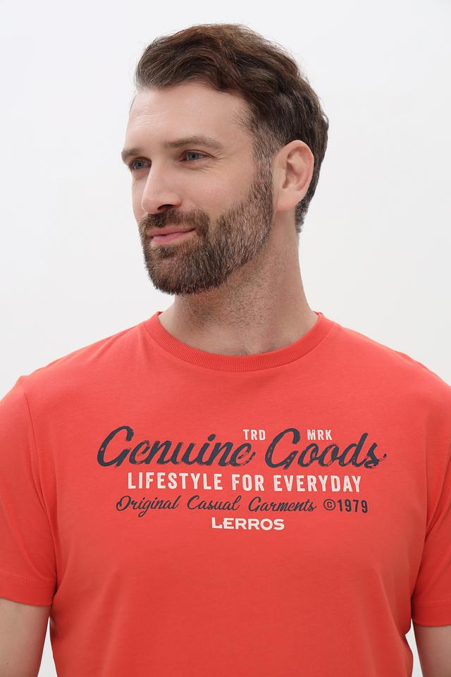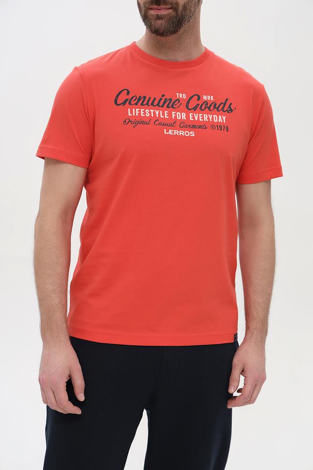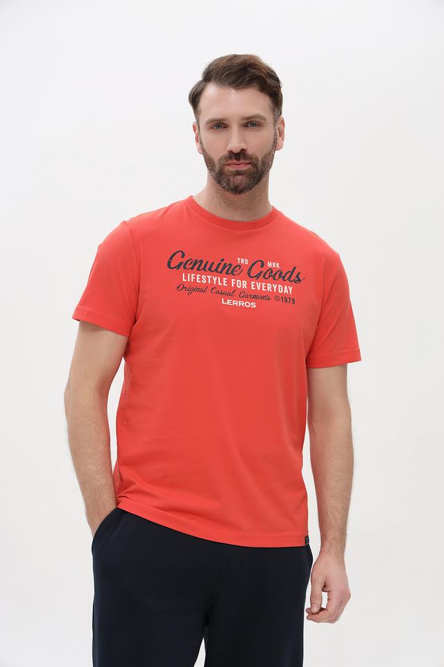 Мужская футболка Lerros кораллового цвета с ярким принтом на груди. Изготовлена из 100% хлопка, обеспечивающего комфорт и воздухопроницаемость. Отличный выбор для повседневного образа. Состав: хлопок 100%