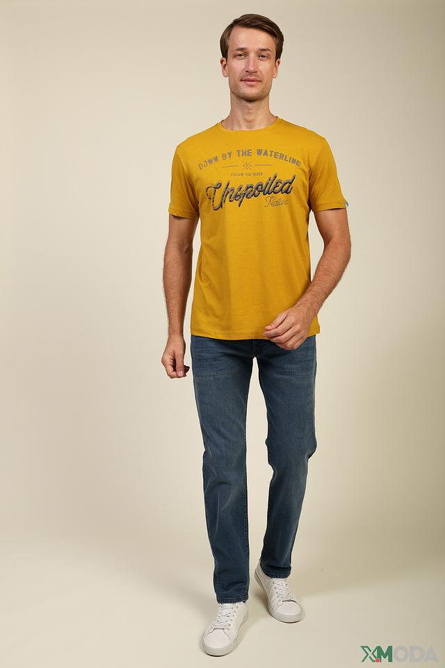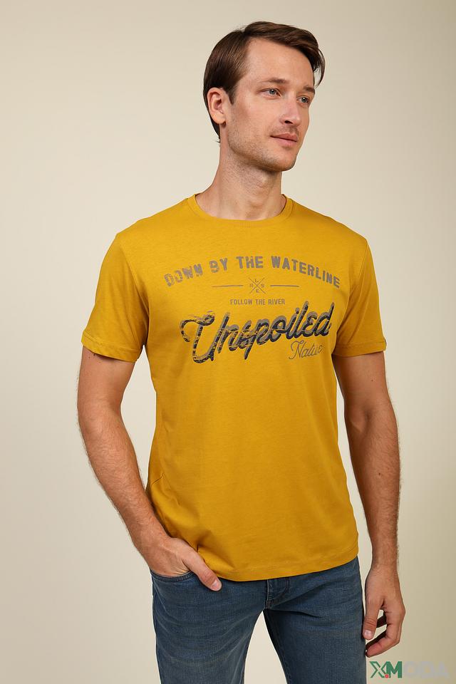 Мужская футболка Lerros горчичного цвета с оригинальным принтом на груди. Изготовлена из 100% хлопка, обеспечивающего комфорт и воздухопроницаемость. Стильный и удобный вариант для повседневной носки. Состав: хлопок 100%