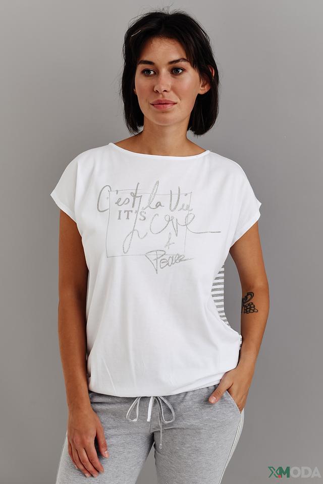 Белый цвет футболки делает ее универсальной и легко сочетаемой с различными элементами одежды. Оригинальный принт с надписью добавляет образу индивидуальности и стиля.