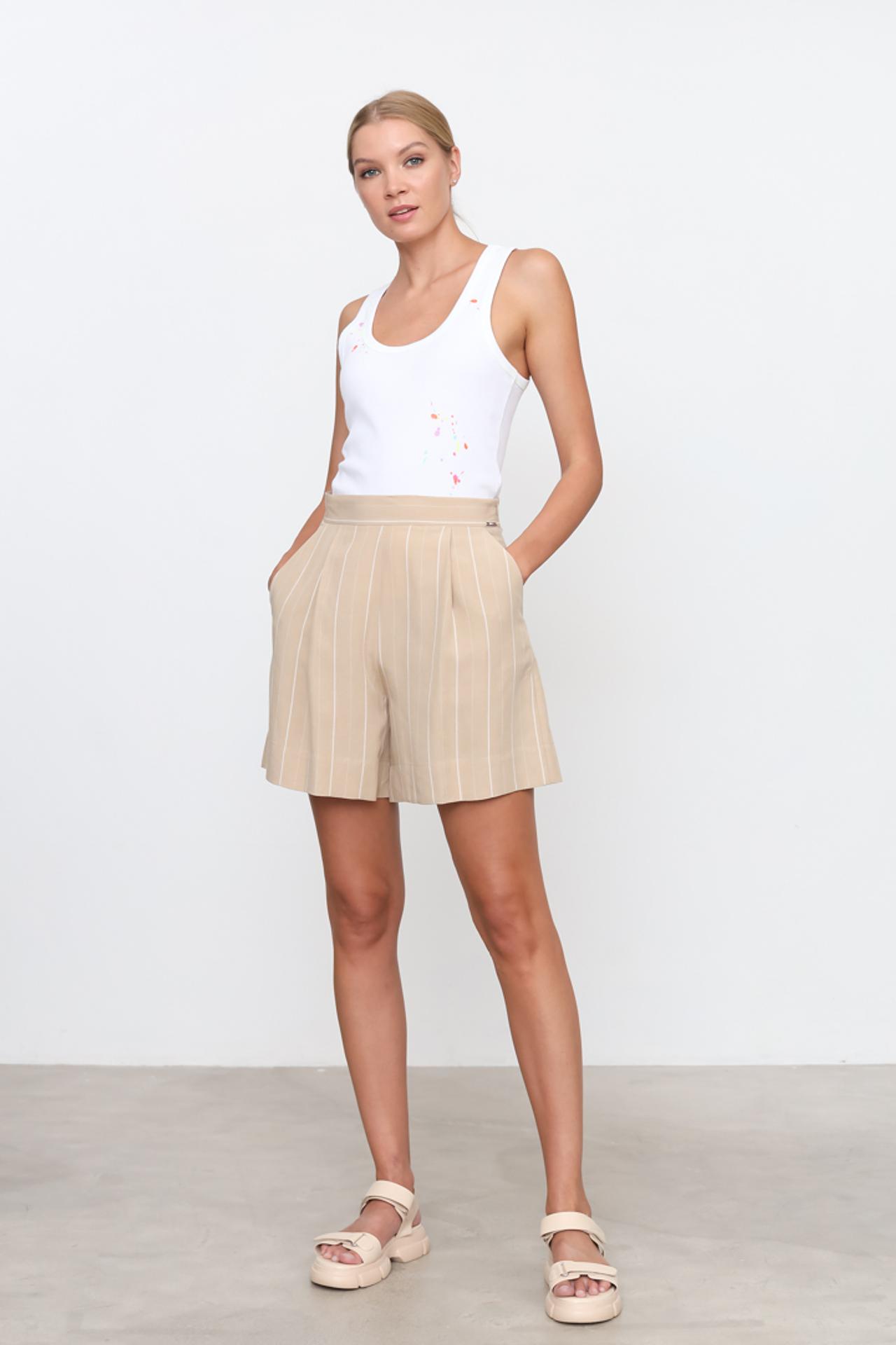 Шорты Liu-Jo бежевые в полоску с высокой посадкой