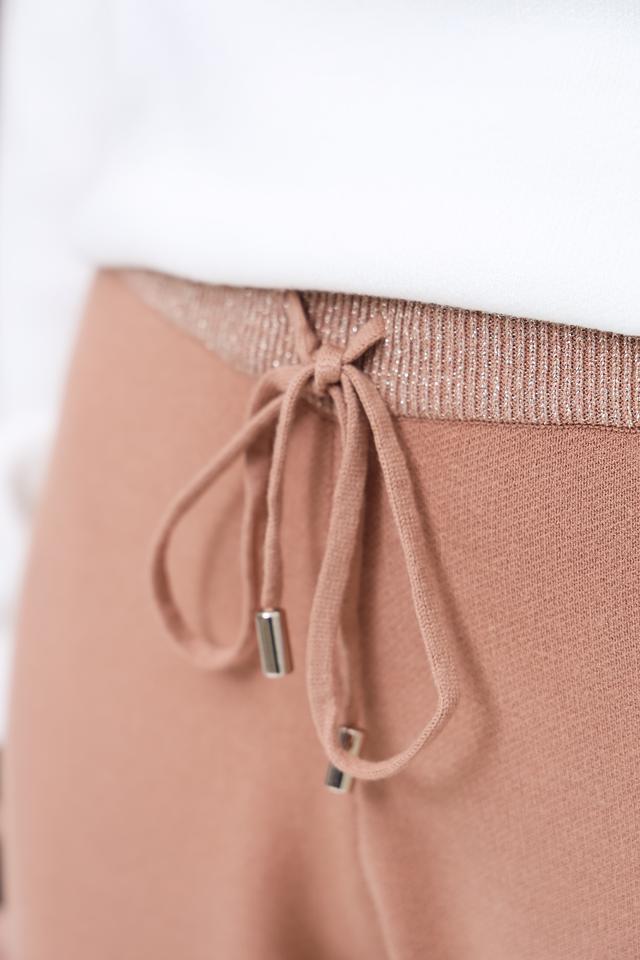 Брюки имеют удобный крой, эластичный пояс с регулируемым шнурком и манжеты внизу. Они изготовлены из высококачественной ткани, состоящей из вискозы (53%), полиэстера (32%) и полиамида (15%). Такой состав обеспечивает мягкость, комфорт и долговечность изделия.