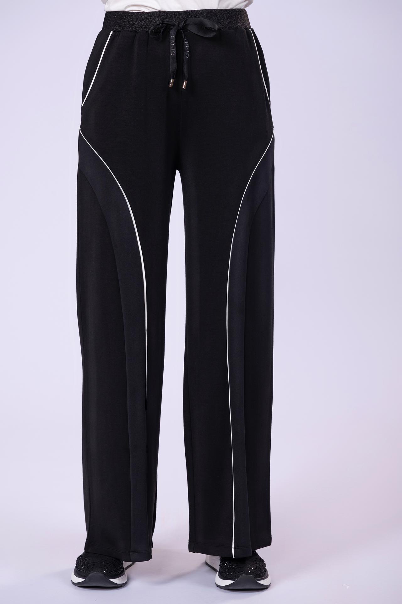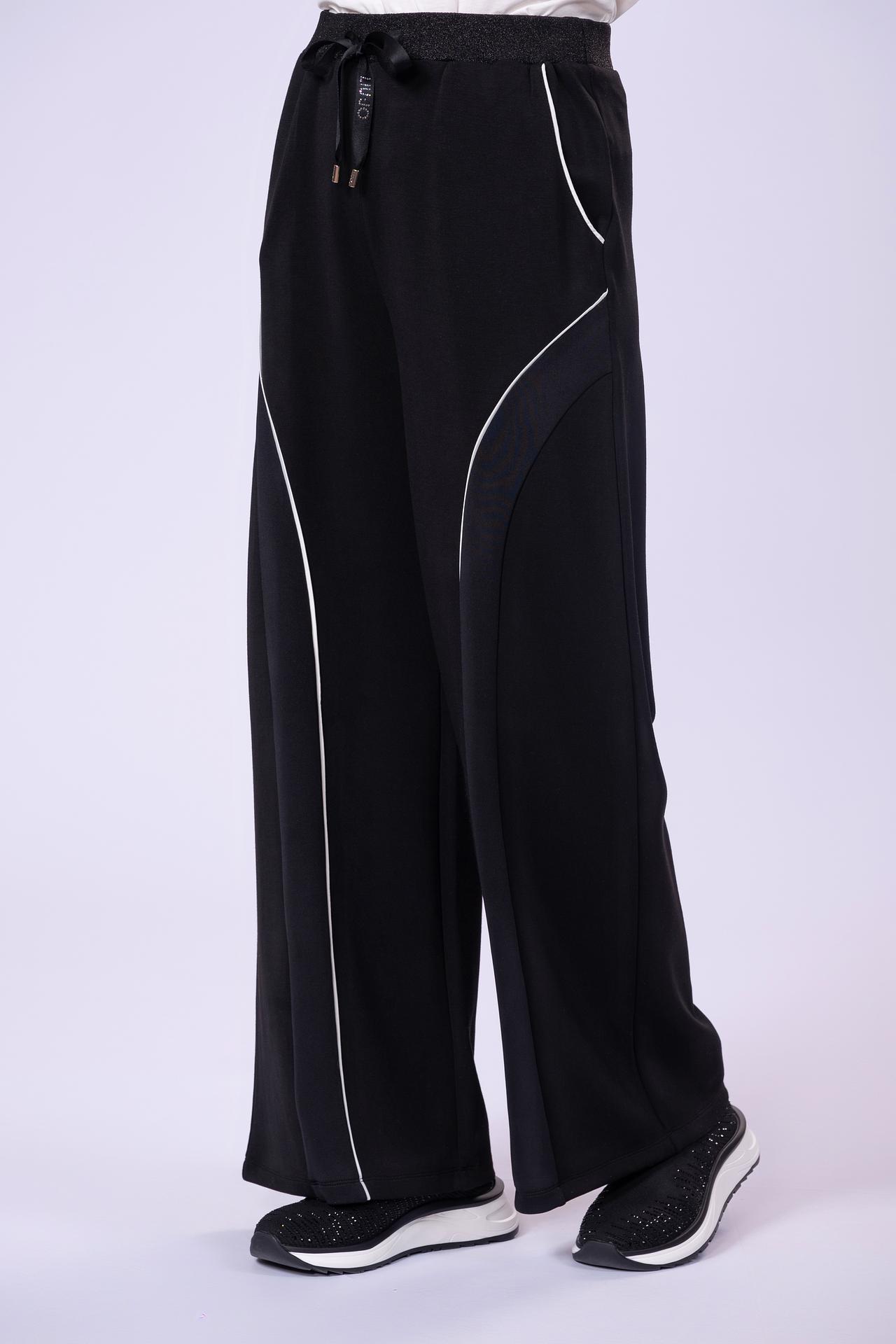 Благодаря универсальному дизайну и практичному черному цвету, эти брюки легко впишутся в ваш гардероб. Элегантная белая отделка добавляет современный акцент и визуально вытягивает силуэт, делая образ более утонченным. Шнурок на талии позволяет регулировать посадку по фигуре.