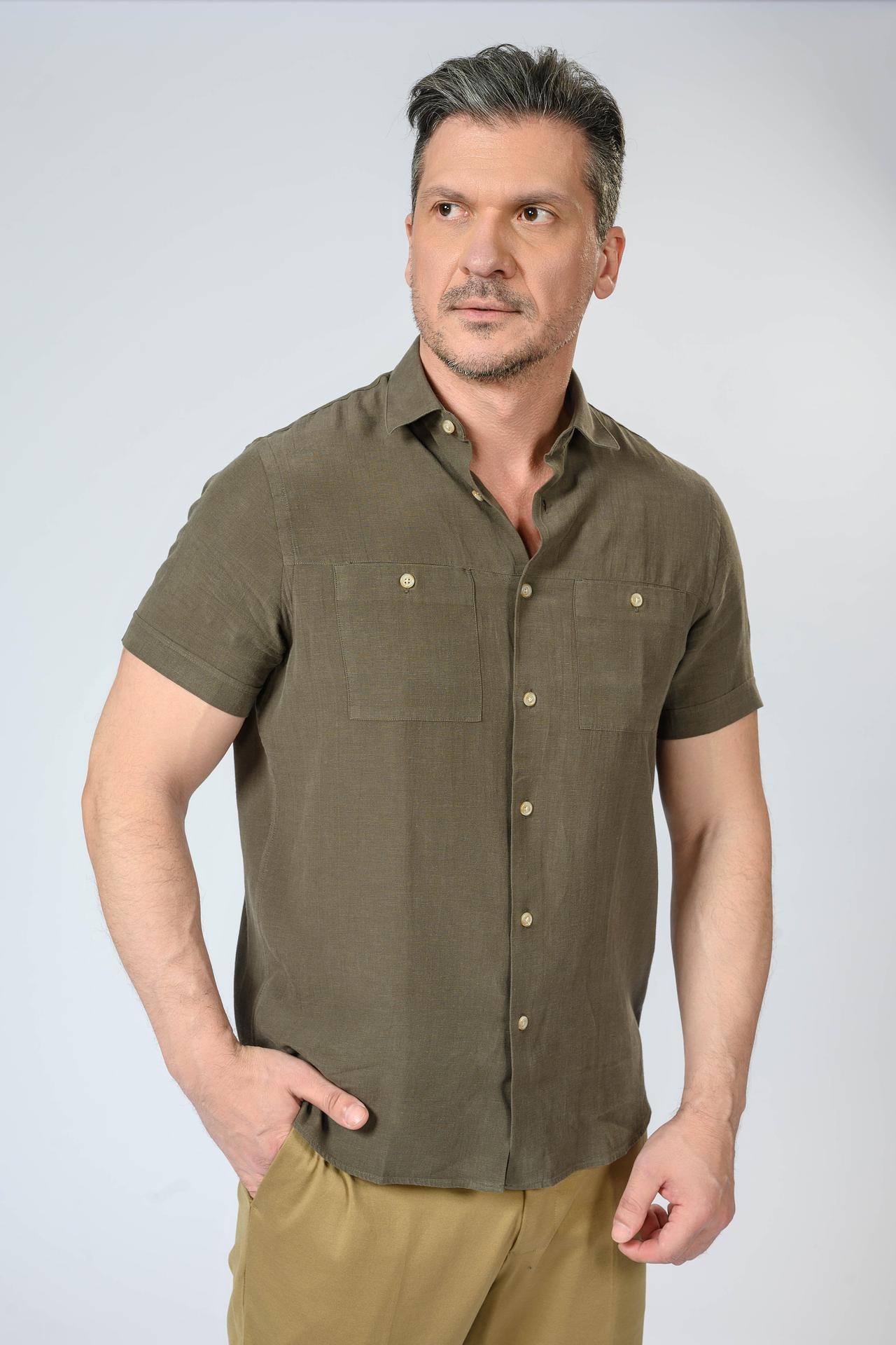 Рубашка Liu-Jo мужская цвета хаки с коротким рукавом