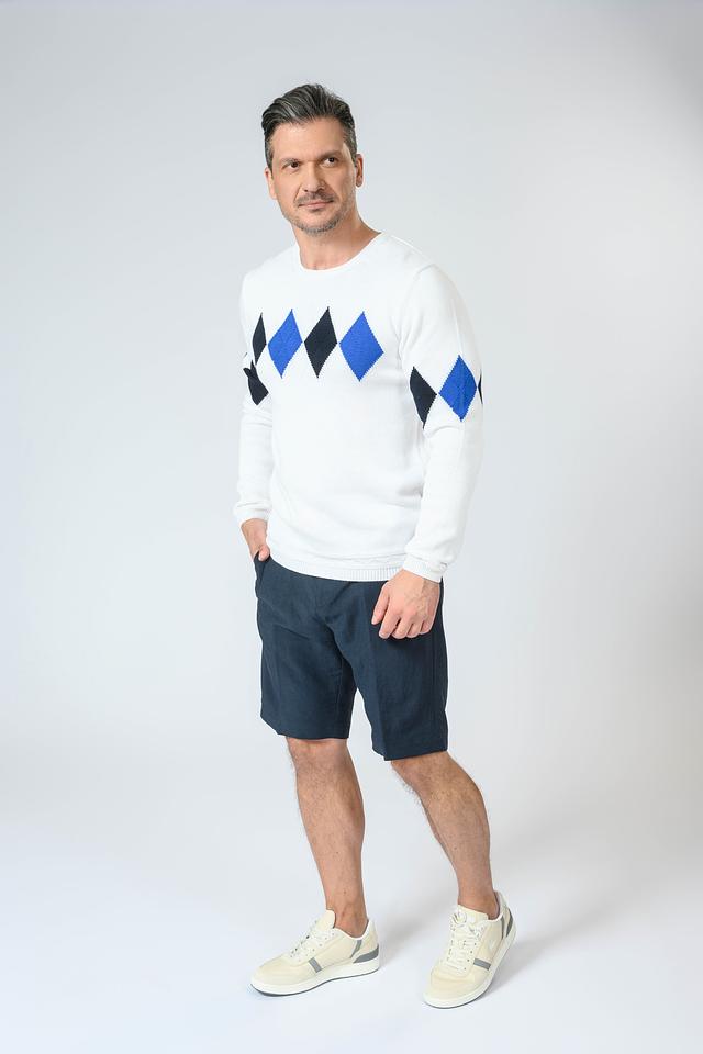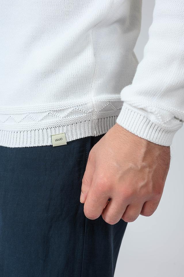 Белый мужской джемпер Liu-Jo с геометрическим узором в виде ромбов. Изготовлен из 100% хлопка, обеспечивающего комфорт и воздухопроницаемость. Стильный и универсальный выбор для повседневного гардероба. Состав: хлопок 100%