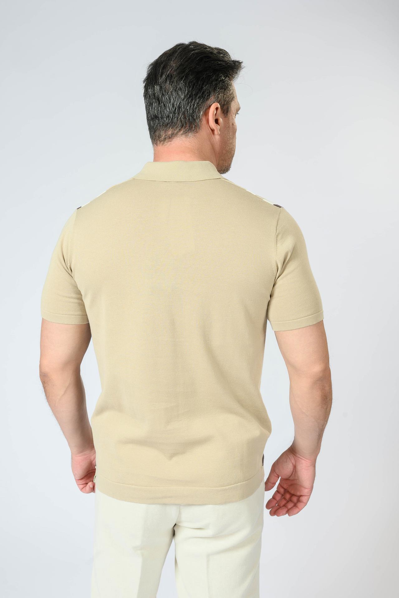 Мужское вязаное поло Liu-Jo бежевое с контрастными полосами