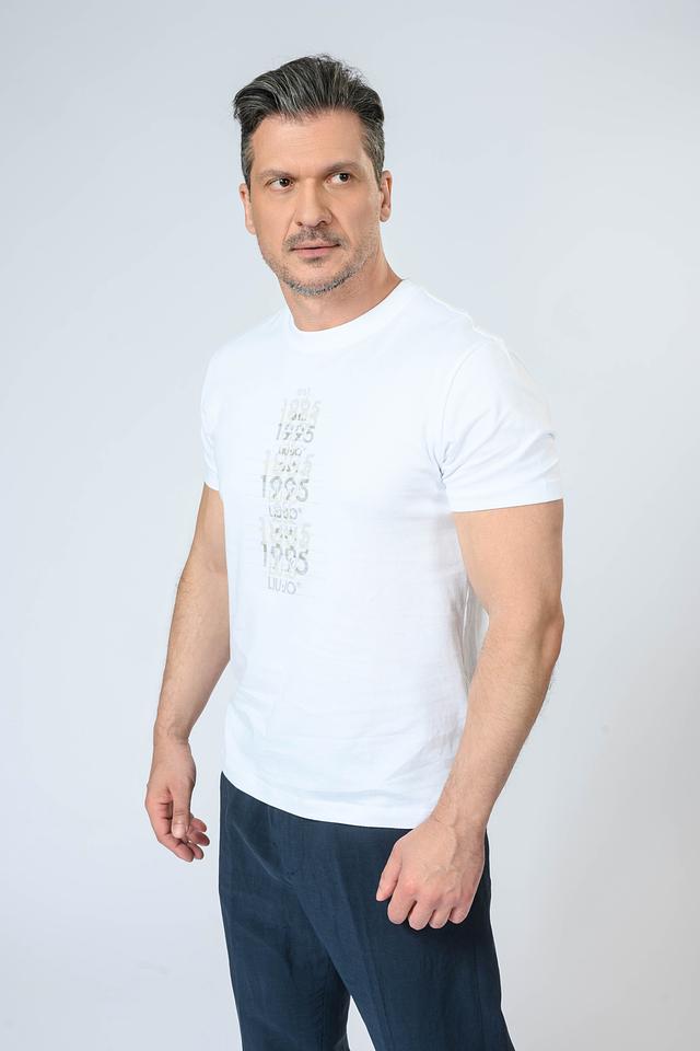 Мужская футболка Liu-Jo белого цвета с оригинальным принтом. Изготовлена из 100% хлопка, обеспечивающего комфорт и воздухопроницаемость. Стильный и универсальный вариант для повседневного образа. Состав: хлопок 100%