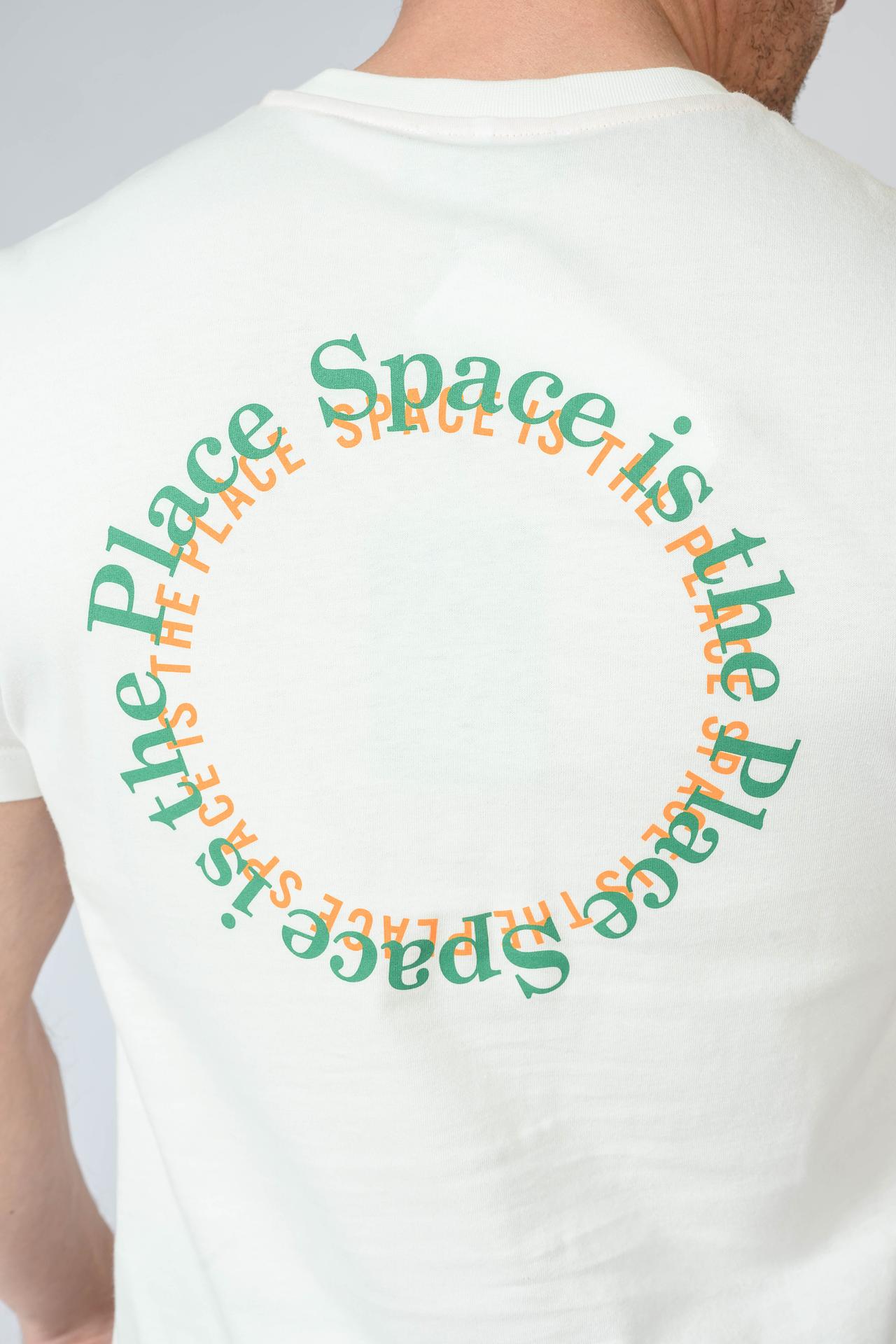 - Стильный дизайн: Минималистичный белый цвет дополнен оригинальными принтами на груди и спине, которые добавляют индивидуальности и современного акцента в ваш образ.