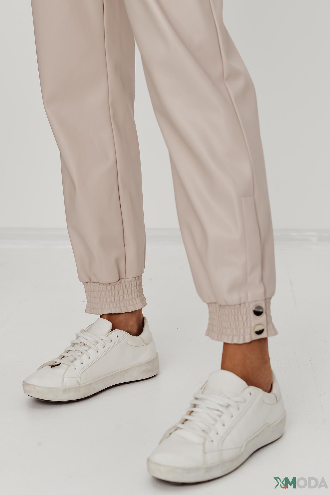 - Детали: Брюки дополнены эластичными манжетами с декоративными пуговицами внизу.