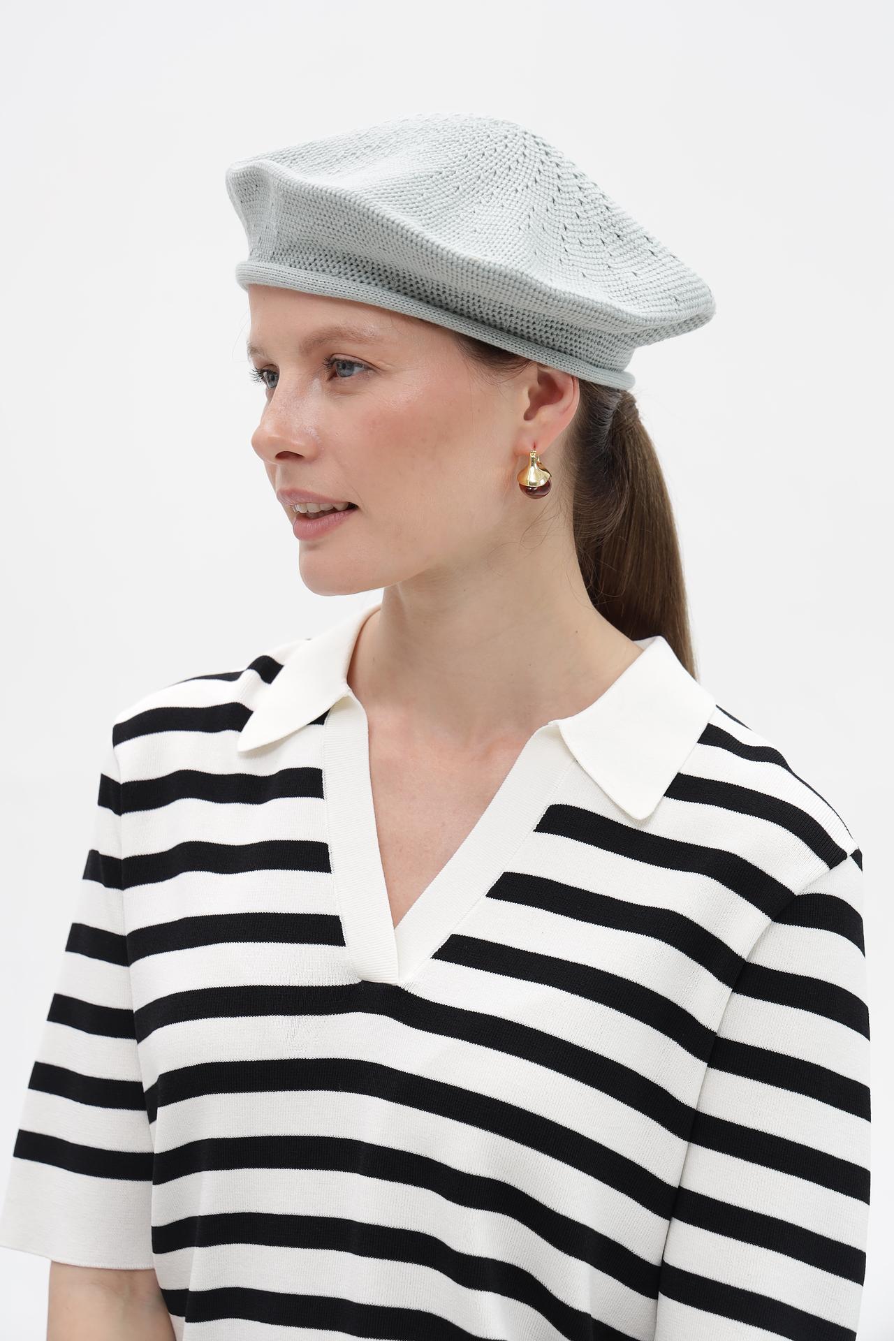 - Дизайн: Классический берет с легкой текстурной вязкой, отличающийся лаконичностью и элегантностью.