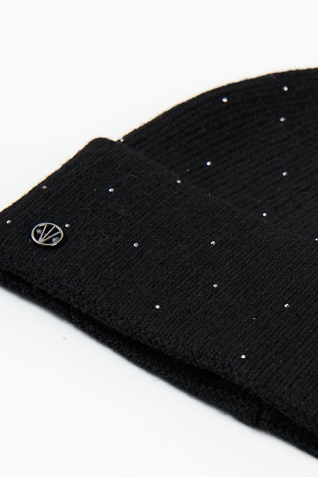 Особый шарм этой шапке придаёт декор в виде мелких страз, аккуратно расположенных по всей поверхности. Также на шапке присутствует небольшой металлический логотип бренда. Шапка плотно прилегает к голове, надёжно защищая от холода и ветра.
