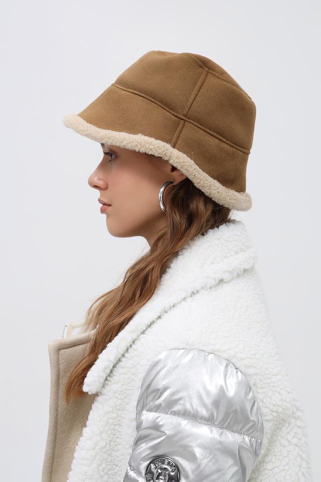 Эта шляпа-ведро от Loevenich – отличный выбор для тех, кто ценит комфорт и стиль. Шляпа выполнена из мягкого, приятного на ощупь материала, имитирующего замшу, и отделана искусственным мехом кремового оттенка.