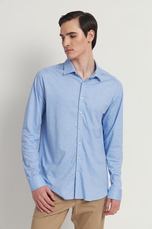 Эта рубашка от Desoto станет отличным дополнением к вашему образу. Она выполнена в приятном голубом цвете и имеет классический крой с длинными рукавами.