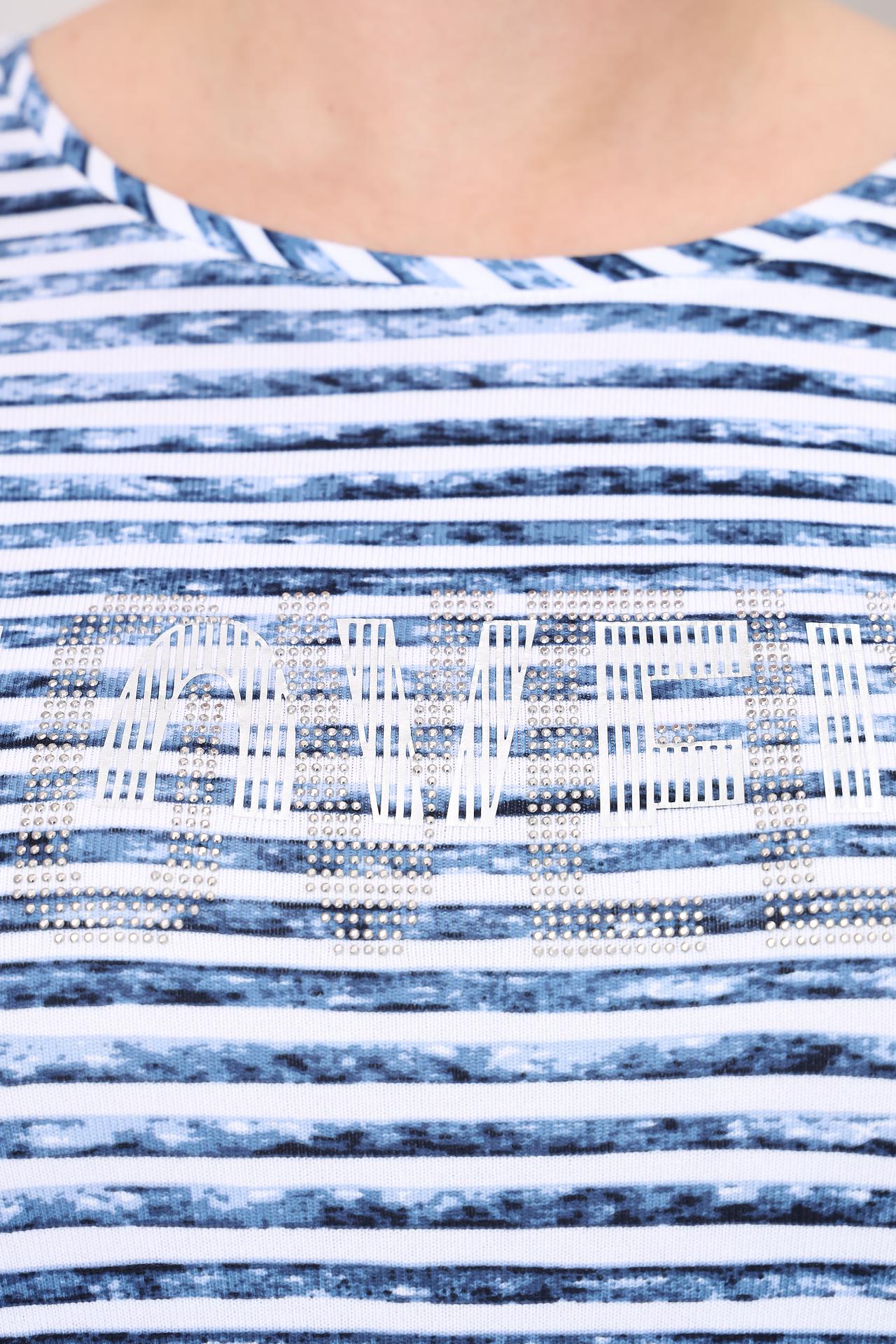 Эффектный дизайн с сине-белыми полосками и декоративной надписью из пайеток придает лонгсливу неповторимый шарм. Удобная длина рукава ¾ и свободный крой обеспечивают максимальный комфорт в течение всего дня. Модель дополнена регулируемой кулиской внизу.