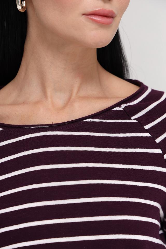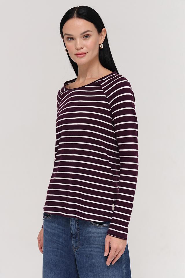 Женский лонгслив Tom Tailor бордового цвета в классическую полоску. Изготовлен из 100% хлопка, обеспечивающего комфорт и воздухопроницаемость. Отличный выбор для создания повседневных образов. Состав: хлопок 100%