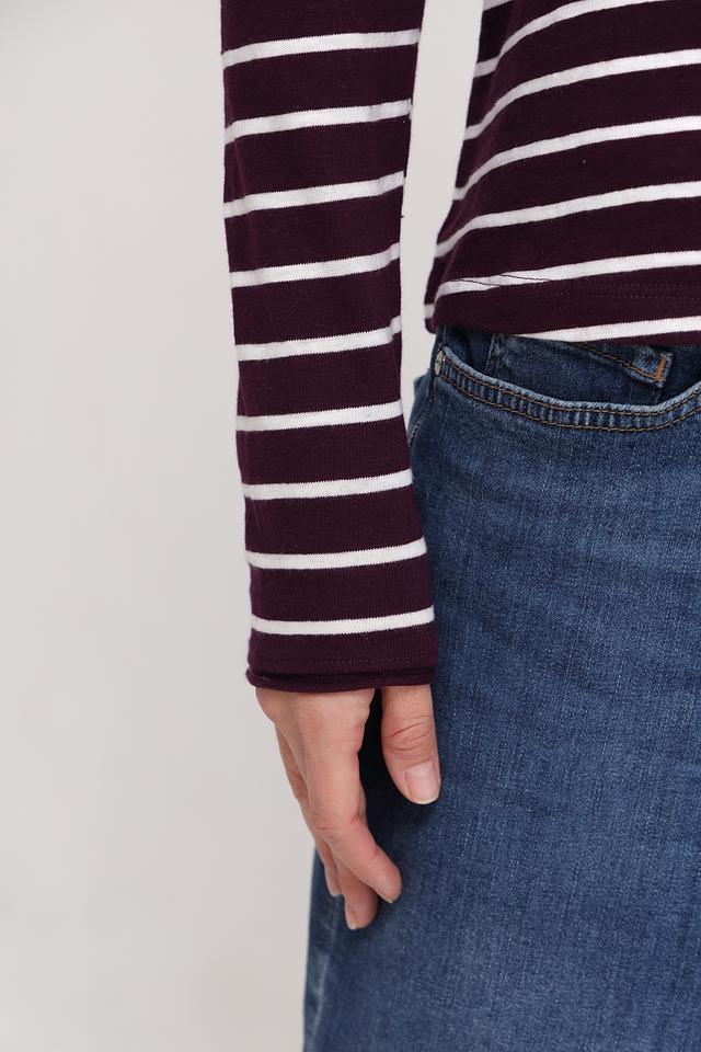 Лонгслив выполнен в бордовом цвете с классическим полосатым рисунком, который легко сочетается с различными элементами одежды. Прямой крой обеспечивает свободу движений, а длинные рукава защищают от прохлады.