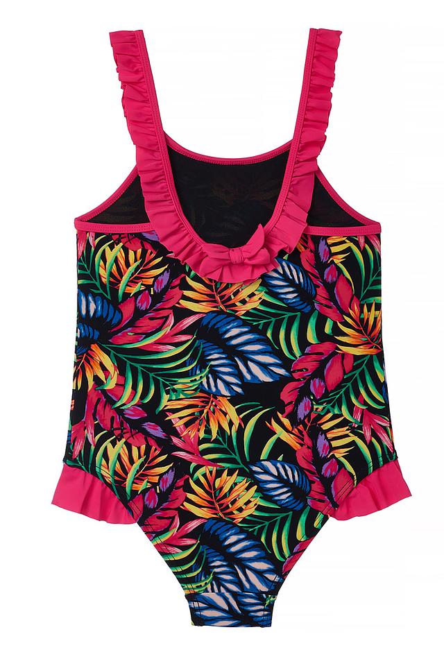 Этот очаровательный купальник от Lowry станет отличным выбором для юных любительниц плавания и игр на пляже. Купальник выполнен в яркой цветовой гамме с тропическим принтом, который обязательно понравится девочкам.