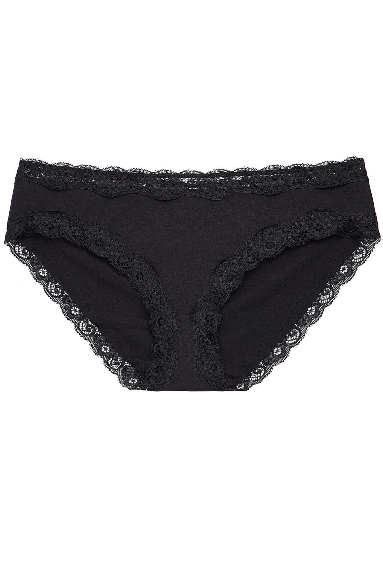 Стильный дизайн дополнен изысканным кружевом по верхнему краю и вырезам для ног, придавая изделию утонченность и женственность. Классический черный цвет делает эти трусы универсальным элементом нижнего белья, подходящим для любого случая.