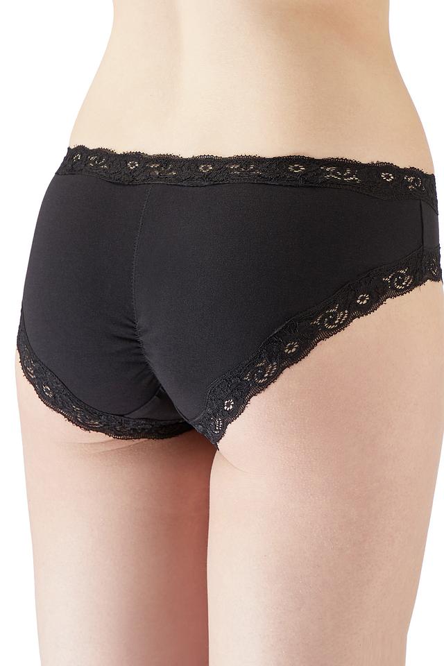 Модель выполнена в классическом чёрном цвете и декорирована изящным кружевом по вырезу и боковым частям, что придает изделию женственности и элегантности. Трусы имеют удобный крой, который не сковывает движений и обеспечивает комфорт в течение всего дня.