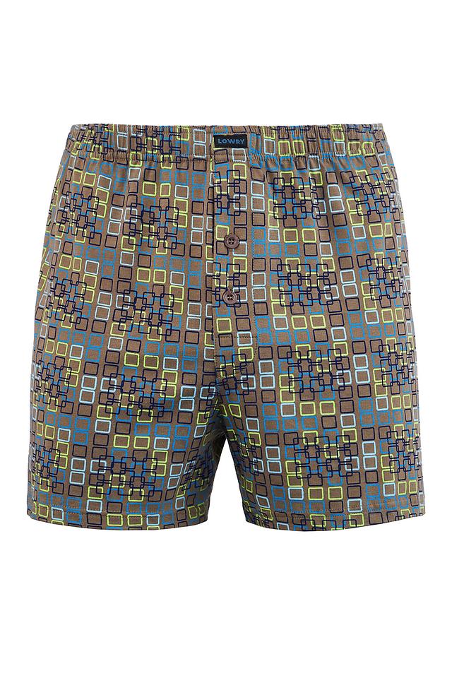 Мужские трусы от Lowry – это сочетание стиля и комфорта. Модель выполнена в оливковом цвете и украшена оригинальным геометрическим принтом в коричневых, голубых и жёлтых тонах.