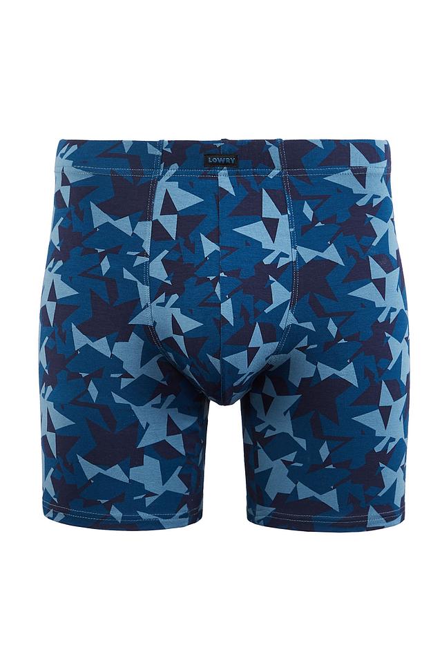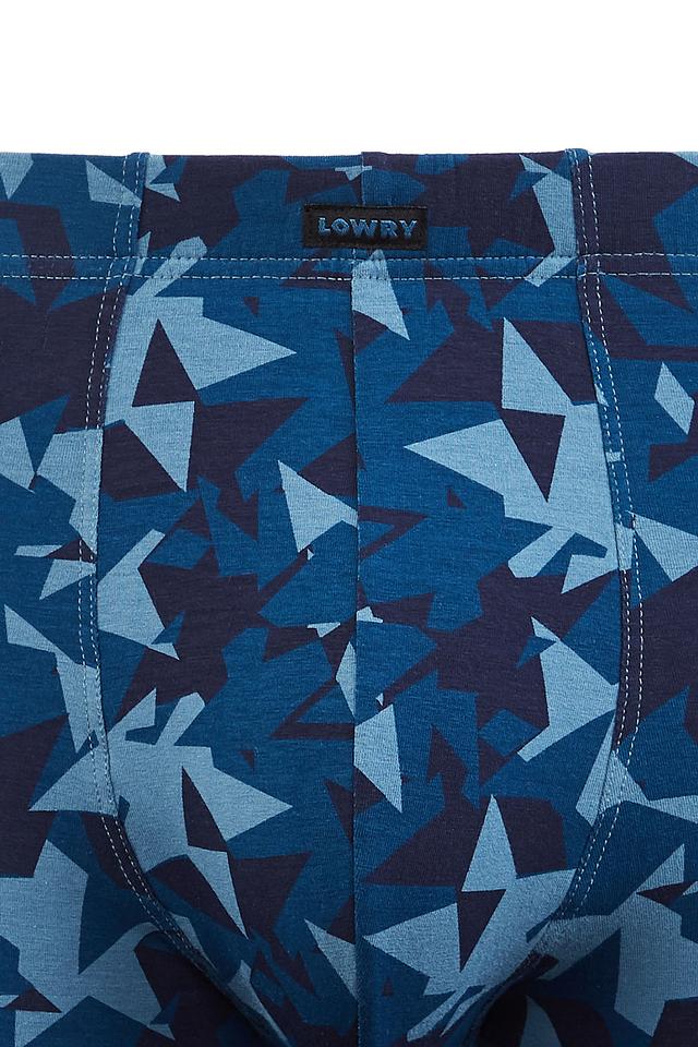 Мужские трусы Lowry синего цвета с оригинальным геометрическим принтом. Изготовлены из мягкого хлопка с добавлением эластана для комфортной посадки и свободы движений. Состав: хлопок 95%, спандекс 5%