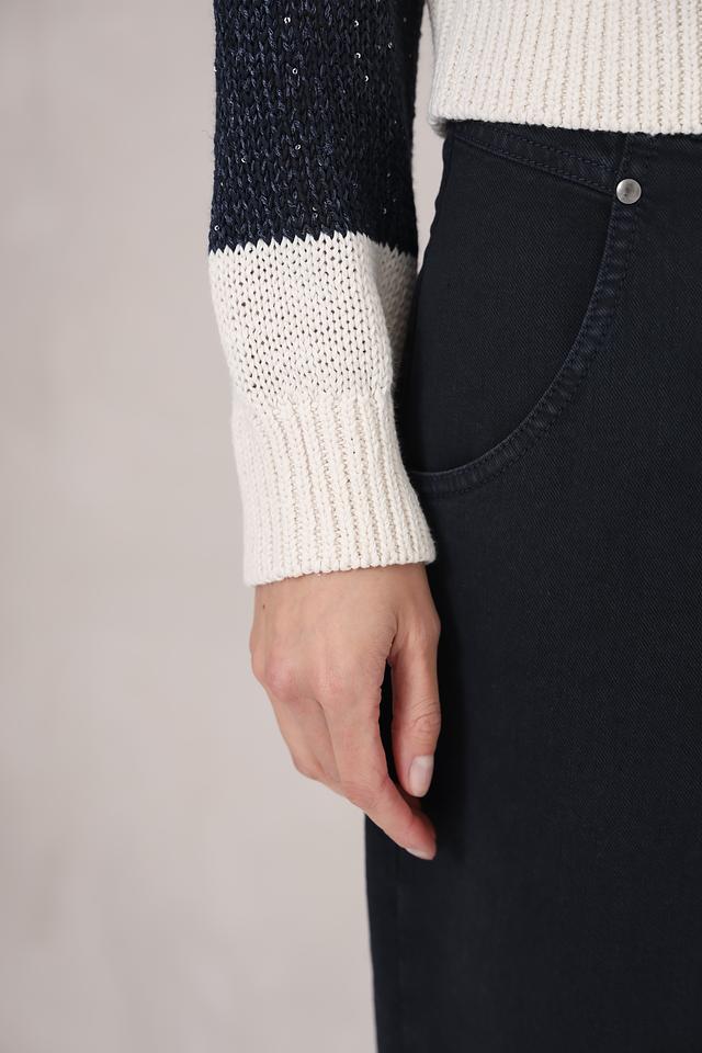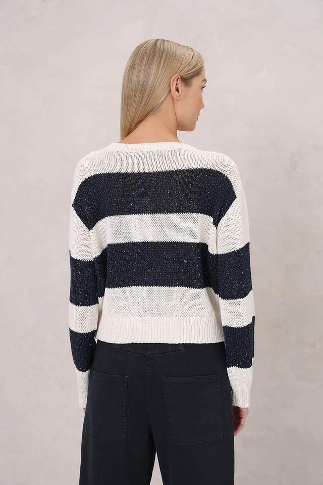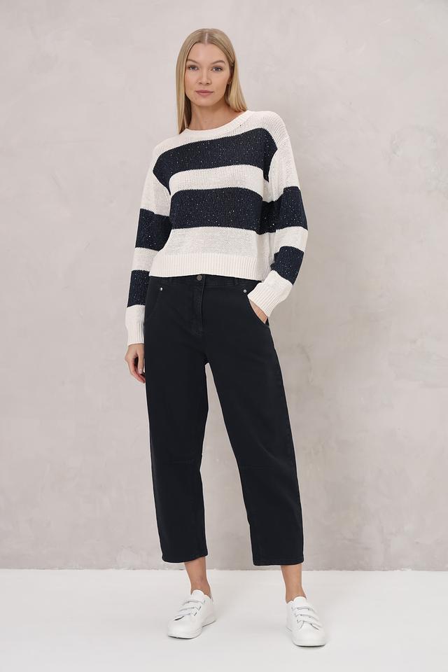 Этот пуловер от Luisa Cerano станет отличным дополнением к вашему гардеробу. Он выполнен в классическом стиле с горизонтальной полоской, сочетающей кремовый и тёмно-синий цвета.