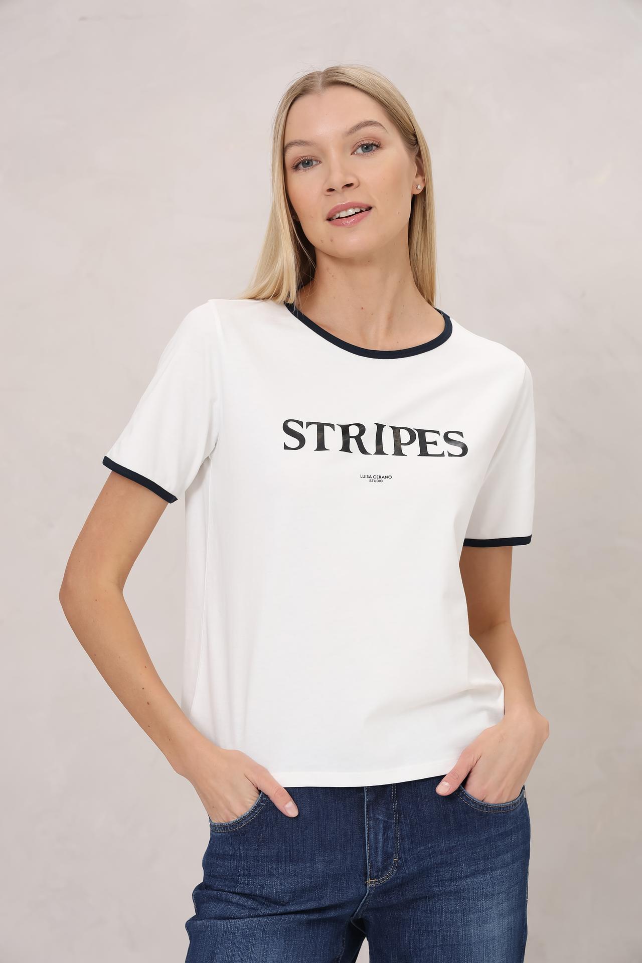 Футболка Luisa Cerano белая с надписью STRIPES и контрастной отделкой