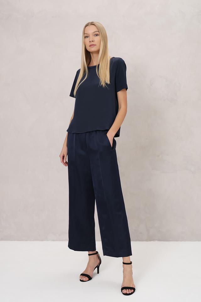 Представляем вашему вниманию элегантные брюки кюлоты от бренда Luisa Cerano. Эта модель выполнена в насыщенном темно-синем цвете, который легко сочетается с различными элементами гардероба.